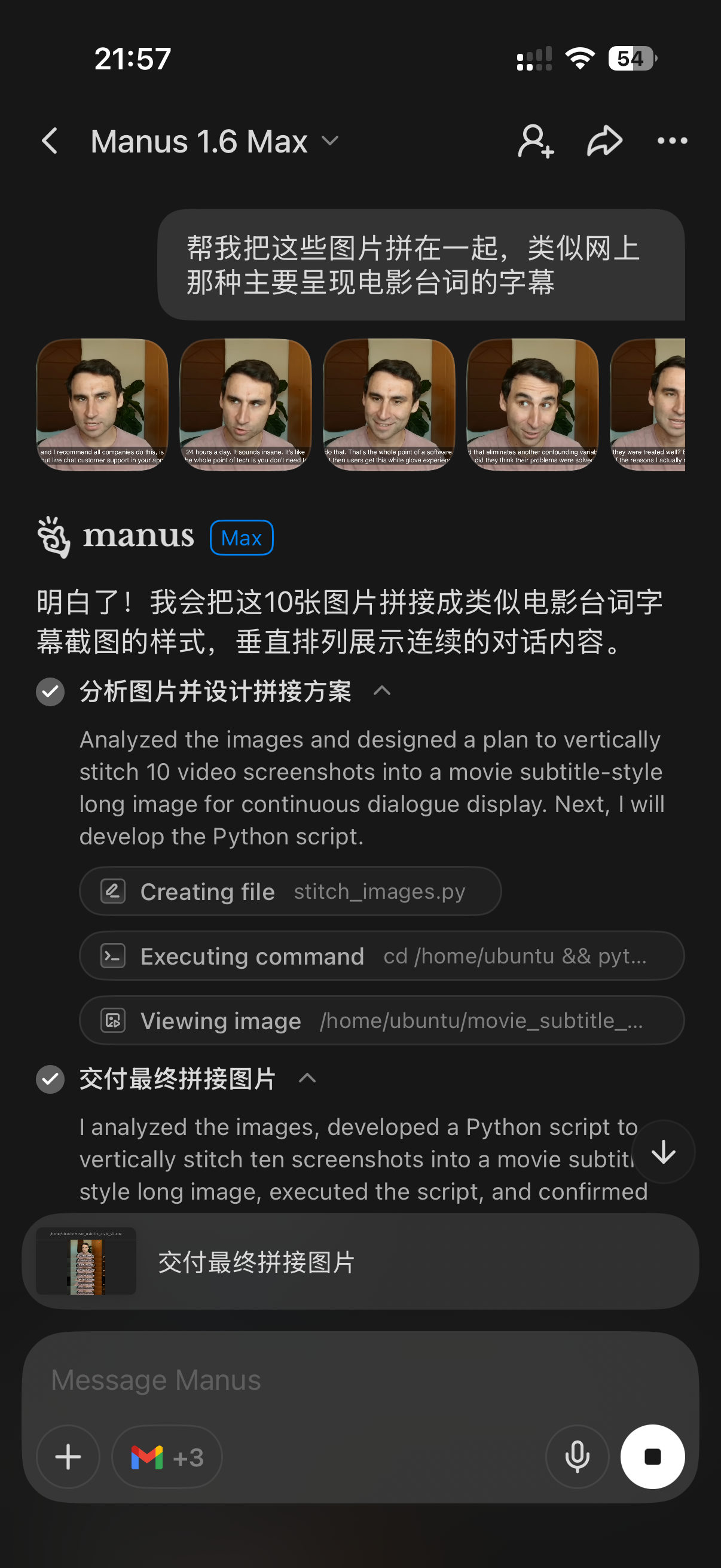 看着 Manus 拆解任务,在虚拟机啊上 shell、python 和浏览器里有条不紊地工作、汇报,情绪价值真是给到位了。每一步消耗的 token 能提前预估,帮我也列一下就好了。
