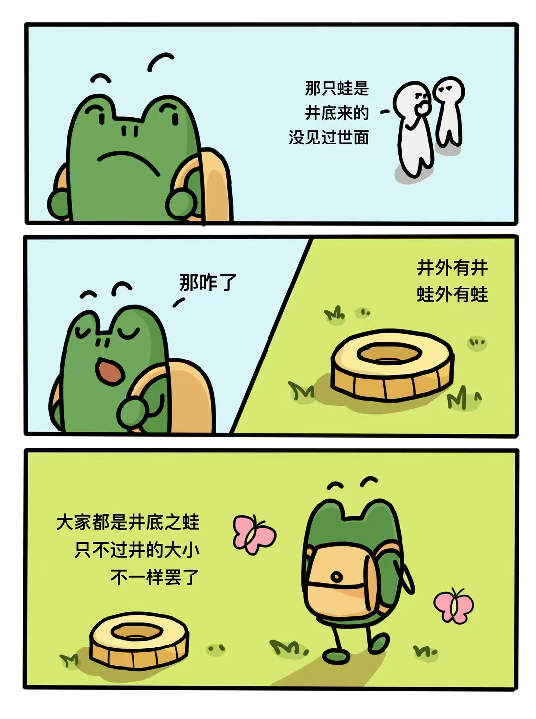 所有的处境,都是一口井。每个人都是井中的一只蛙,在各自熟悉的生活里打转,为一点得失焦虑,为几句评价起伏,为了一丝甜头自喜,渐渐把头顶那一小片天,当成了世界的全部。