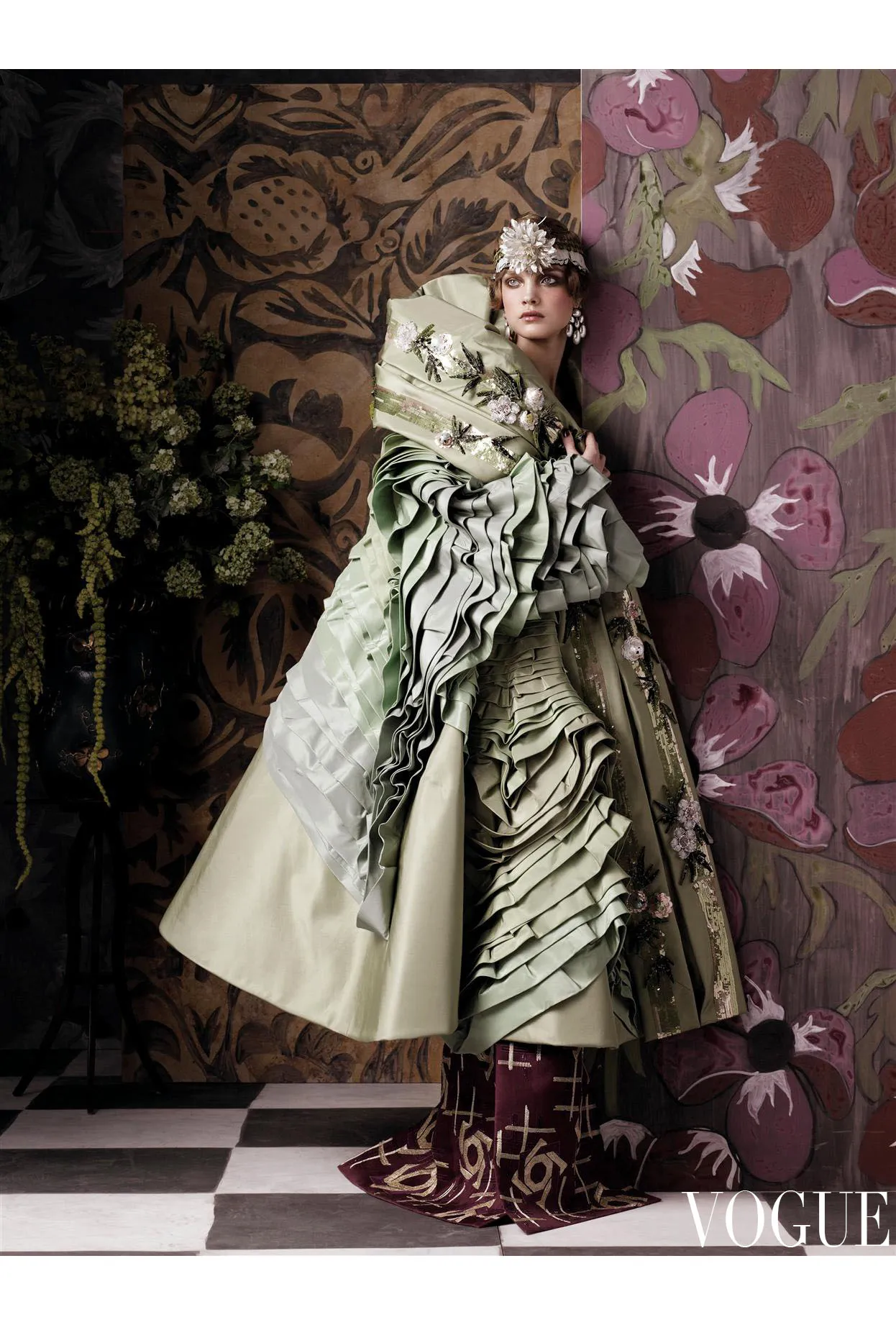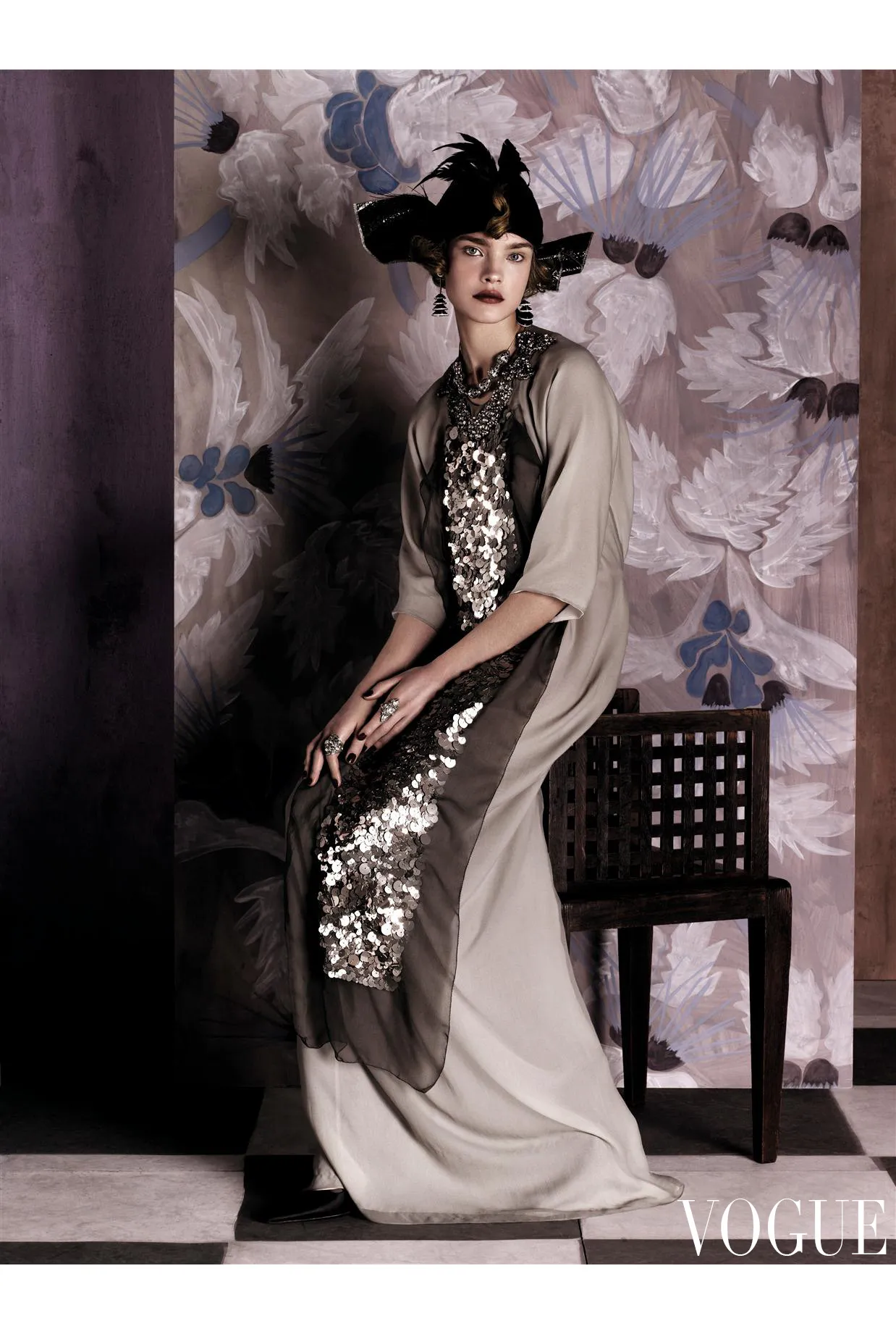 Natalia Vodianova 在 Vogue US 2007 的世纪初时尚,以及对 Paul Poiret 的多方面致敬。