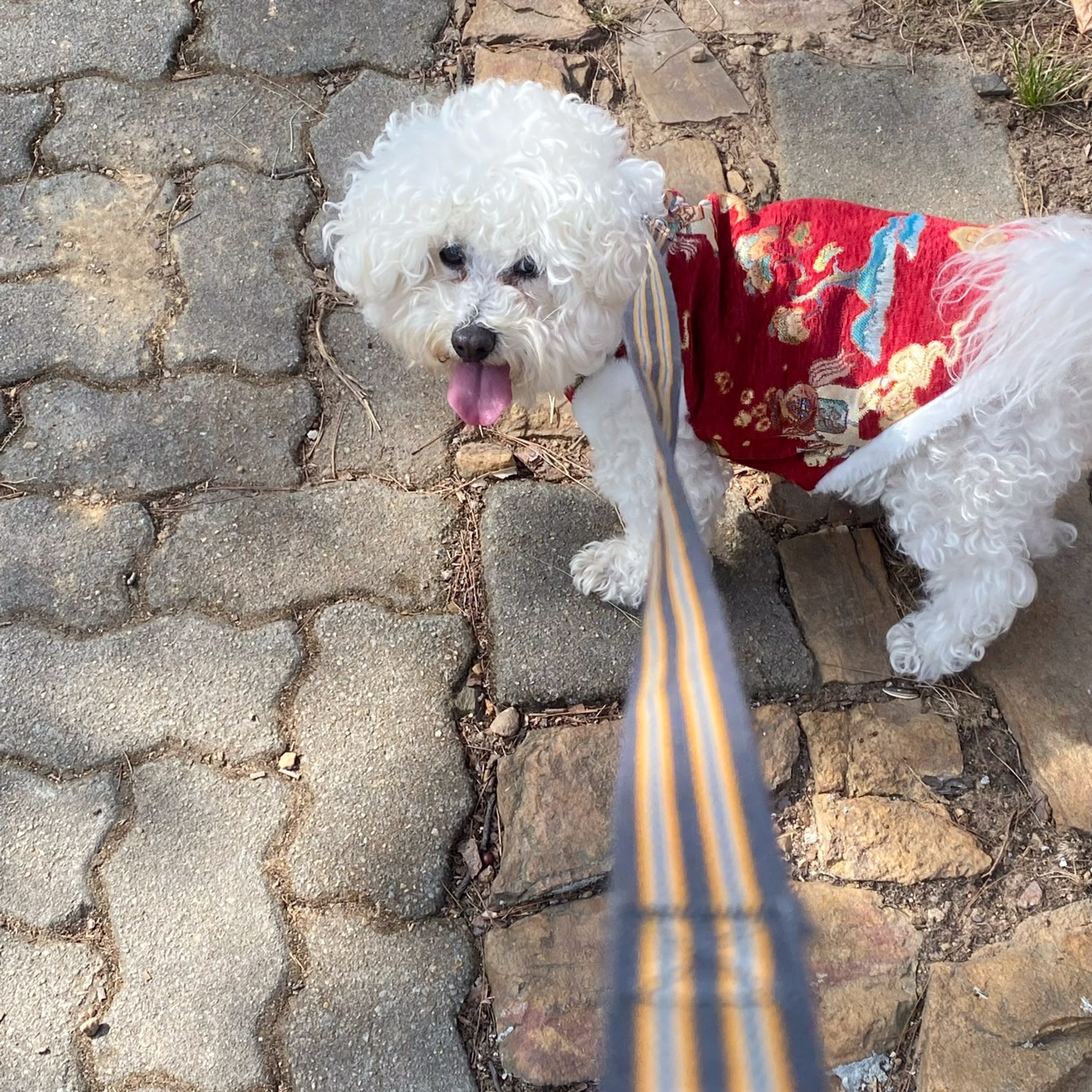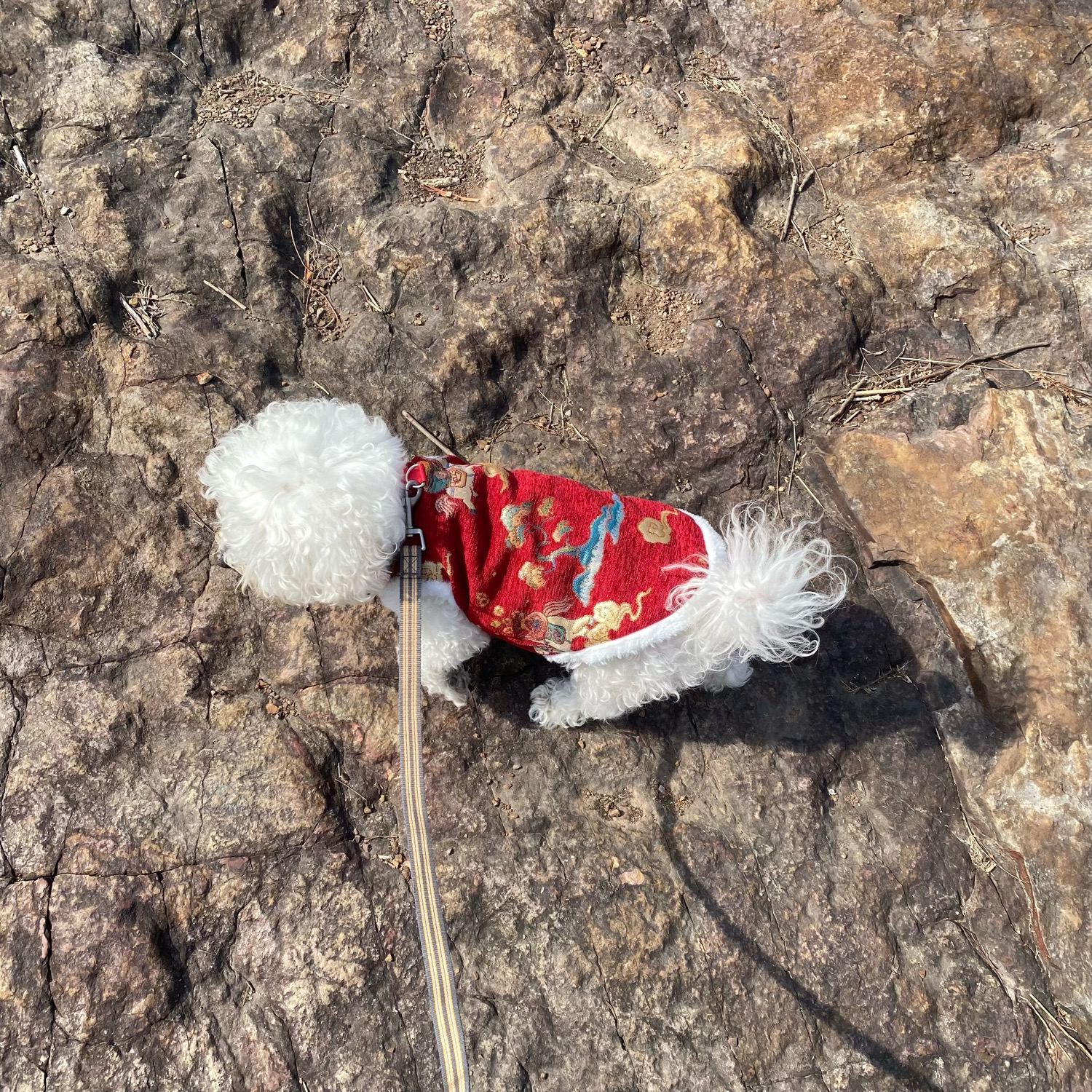 今天小狗在山里,和岩石、泥土、落叶、松果、马尾松、棕树的幼苗、矮竹子、红梅、春天的风、穿紫色冲锋衣的女孩、吃甘蔗的大伯、新认识的小狗朋友们度过了一个上午。下山时,我们坐在石凳上,分享苹果核桃与矿泉水。