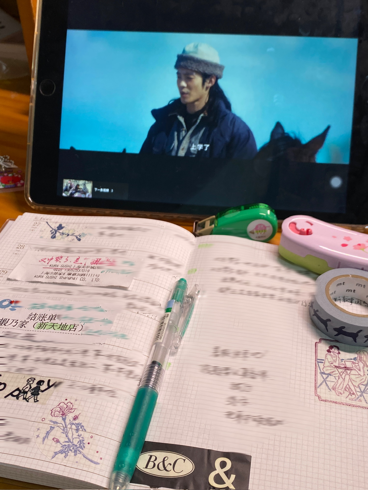 边补上周手帐,边看《我的阿勒泰》