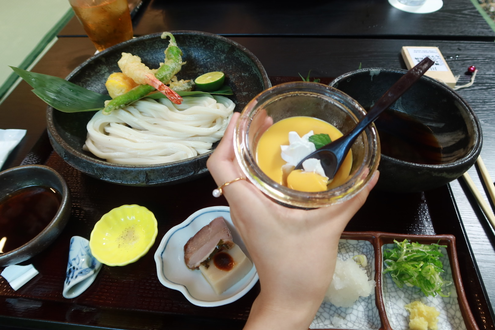 经过1.5h的舟车劳顿后,吃上了川床料理