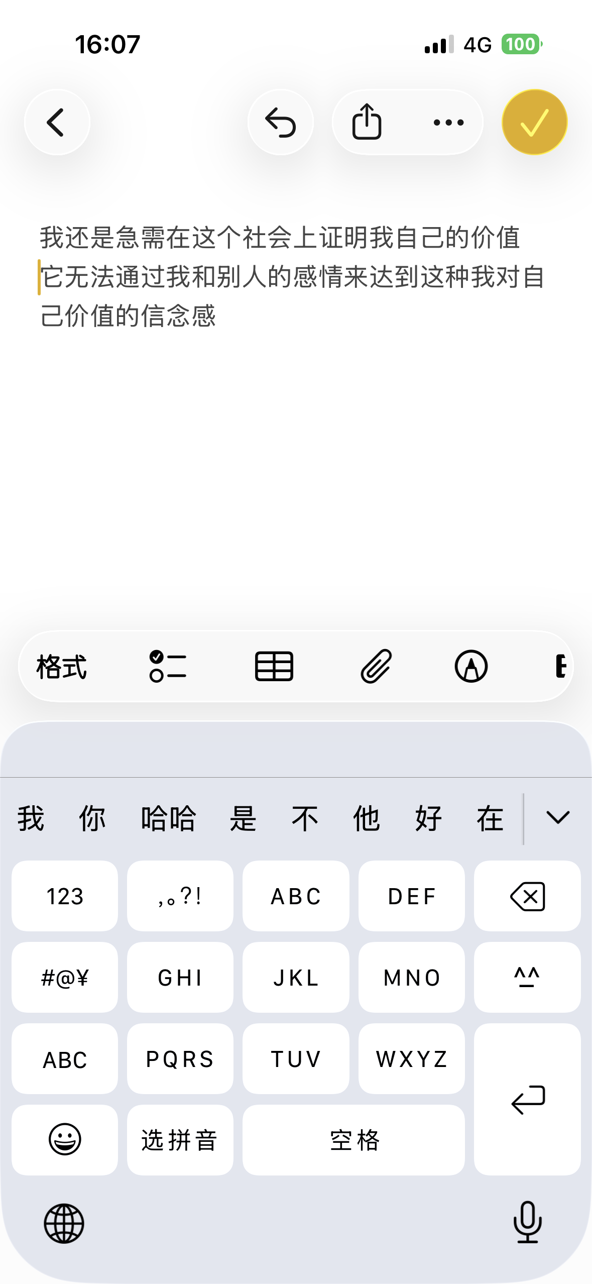 我还是急需在这个社会上证明我自己的价值 它无法通过我和别人的感情来达到这种我对自己价值的信念感