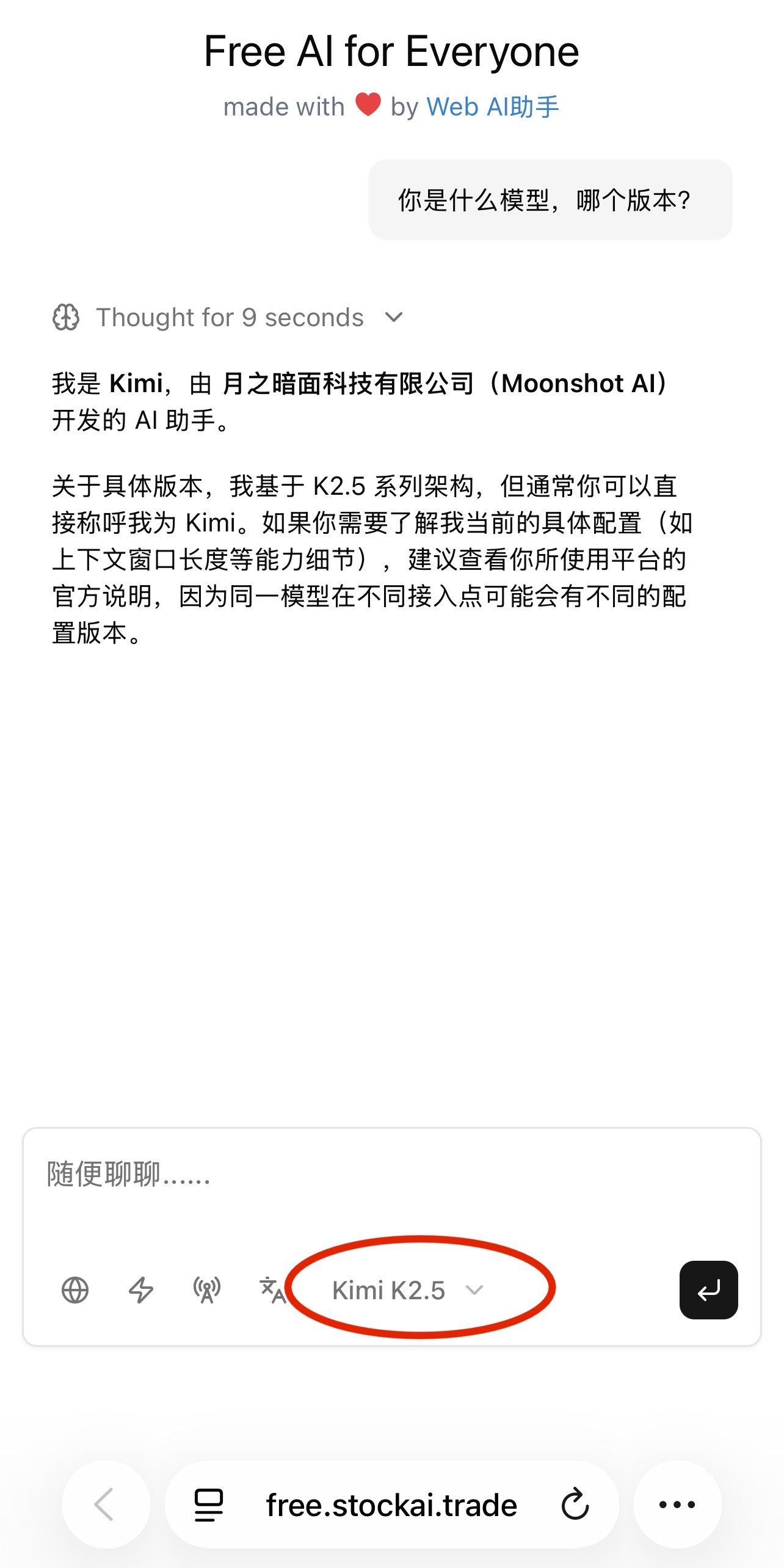 Kimi K2.5在Free AI for Everyone上可以用了,完全免费,不需要登录😎