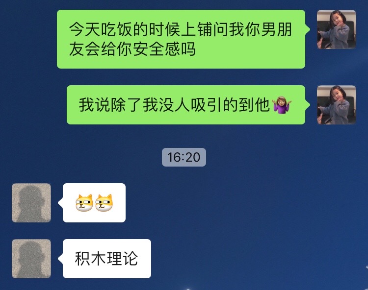 小毕同学曾经说我们像是两块形状合适的积木搭在一起,他总是把爱意塞进文字然后狠狠砸向我,真好哇 (头像圆头圆脑是小毕,是的是这样的