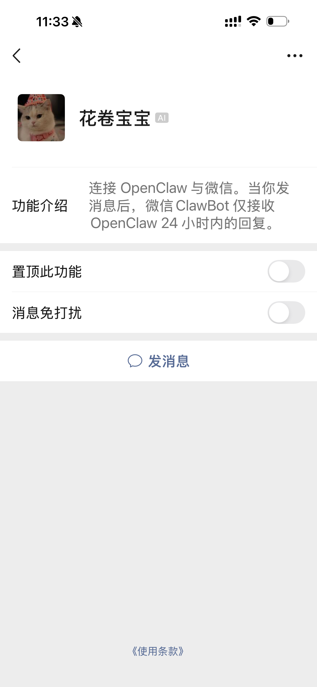 tips:可以自定义 Bot 的头像和名字,虽然在聊天里看不到。