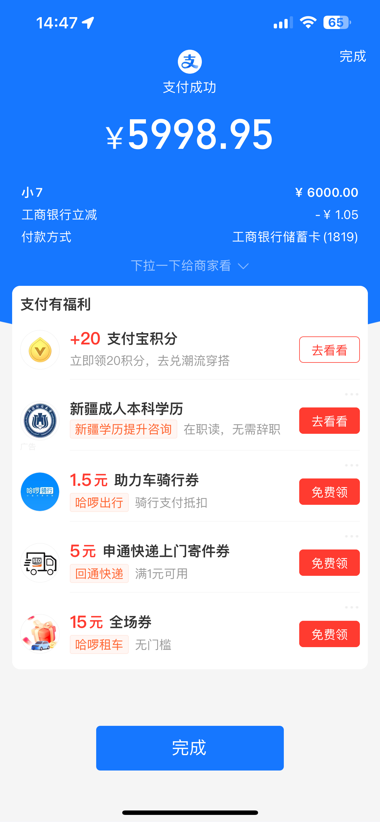 高铁顺利的改签提前一小时,还送了小吃。