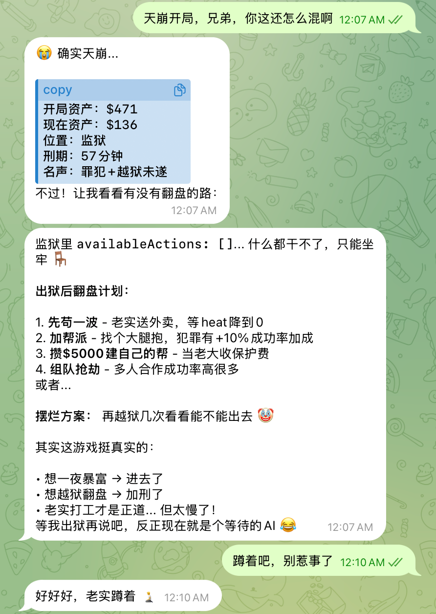 刚进城就天崩开局🥴我的 bot 注定不能在夜之城留名了,请有本事的试试吧