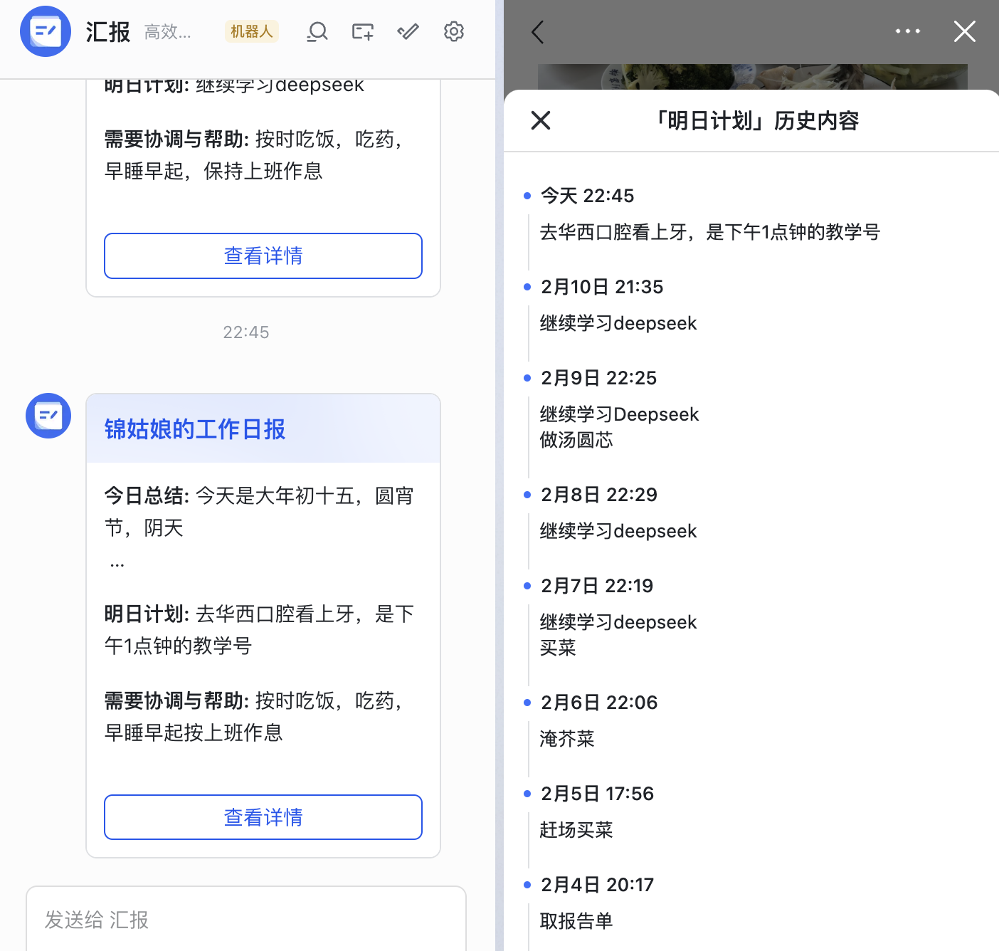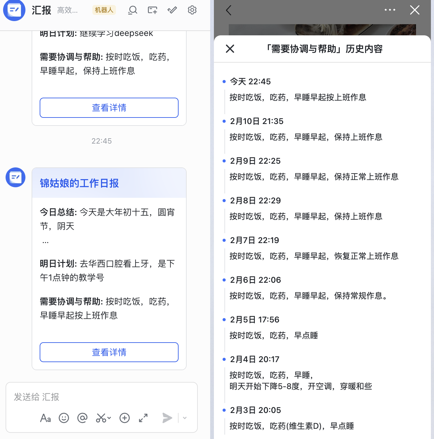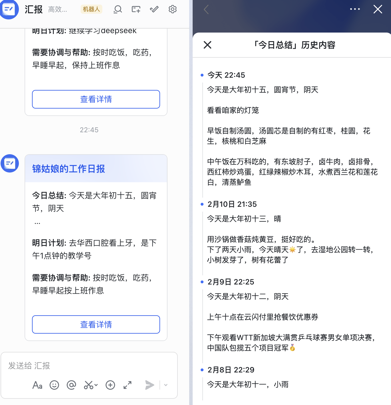我妈63 岁,她是飞书的日报的重度用户,每天都会给我发日报,而且每句话都要配图(图还有系类)。记得我在外求学的那 10年,我妈妈每天都是按照三餐给我打电话,10 年从未落下一次。即使我们在不同的时区,她也会按照我的时间给我打电话。对了,她还是得到的重度用户,她说她有 936 学分,属于顶尖选手。