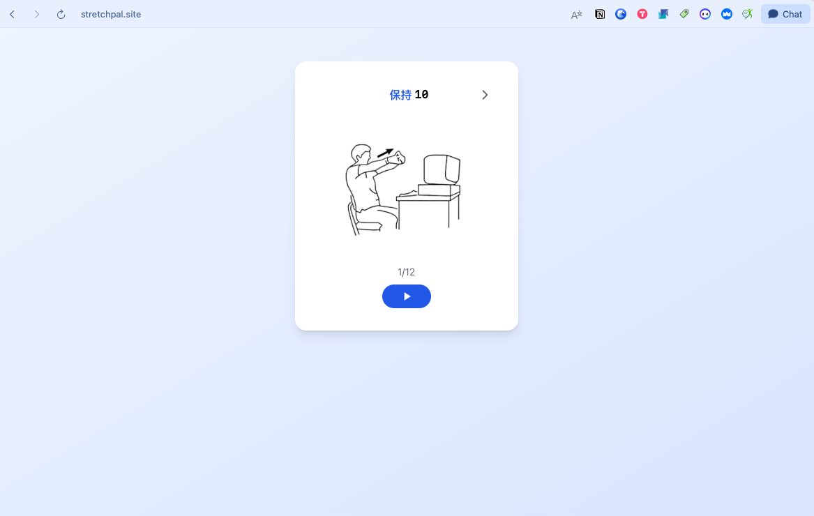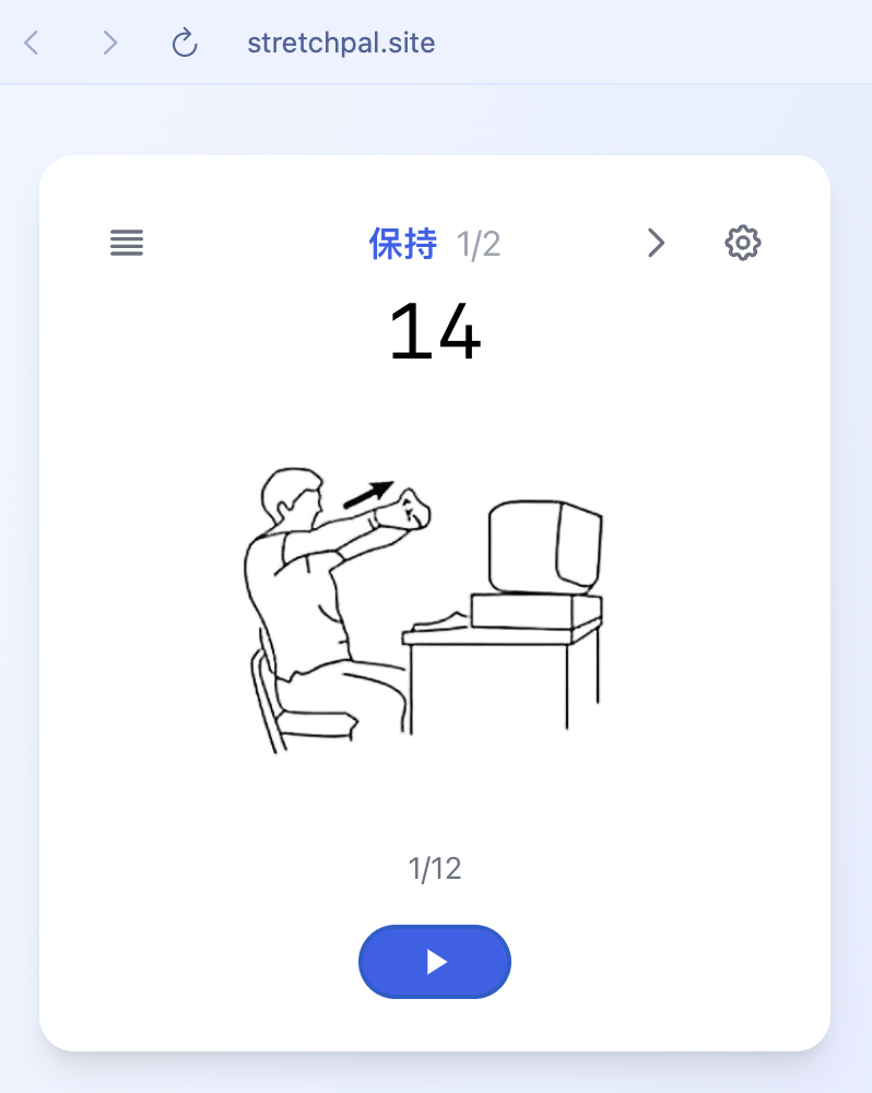 stretchpal.site昨天发布了一个小应用,在工作间隙帮助你有效拉伸放松。