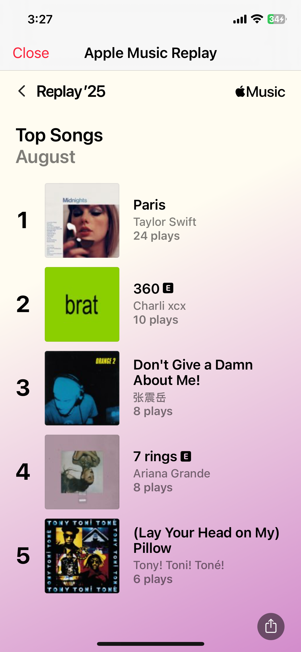 八月听了3025分钟音乐。因为美夏配乐,也是能听懂泰勒和A妹了。