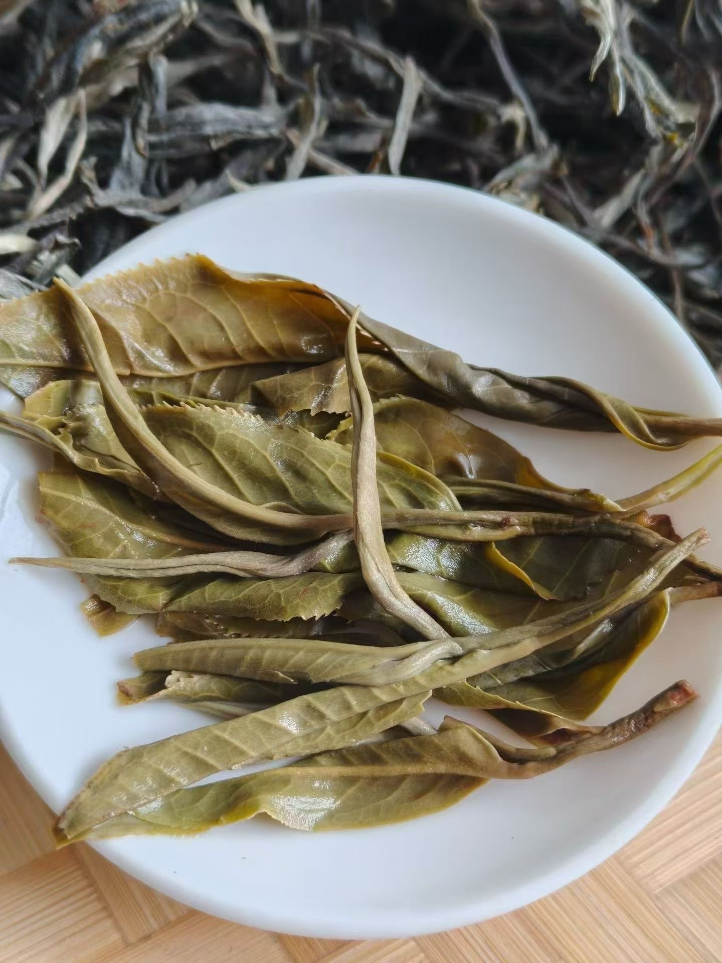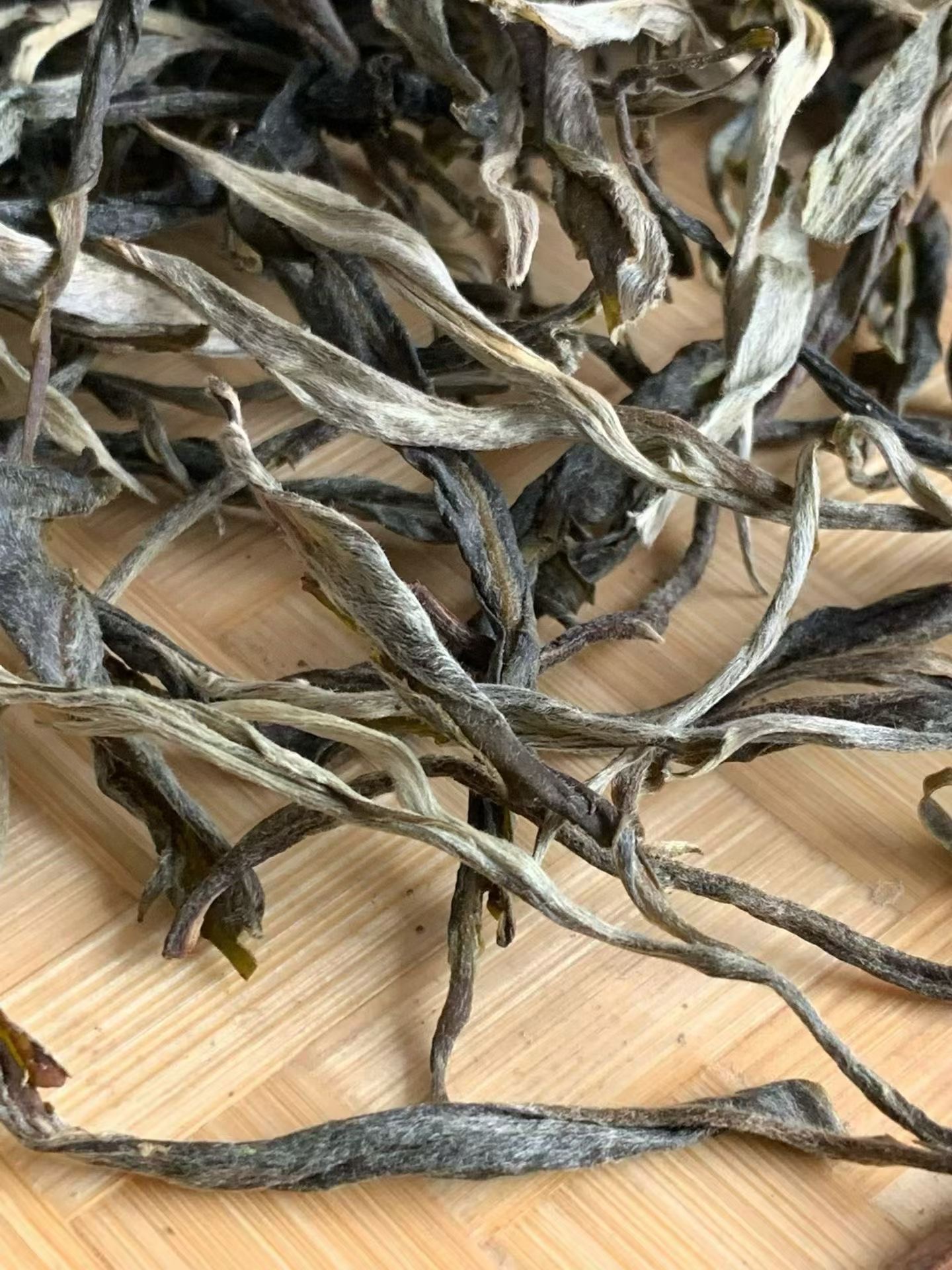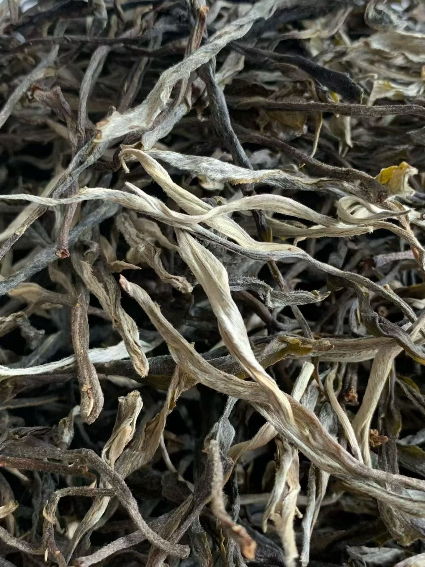 条索粗壮修长,黑褐油润间满是银白毫毛,一芽一叶、一芽两叶的标准采摘,根根清晰舒展,没有碎末,透着古树茶的扎实底气。手工揉制,纸箱仓储封存,最大程度保留叶片活性,开箱瞬间浓郁干净的山林蜜香四溢,底蕴深邃悠长,完整肥硕的茶条,每一根都带着头春的鲜活劲儿。