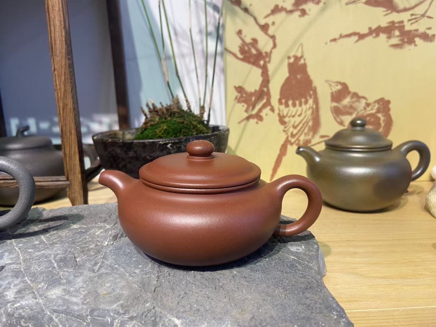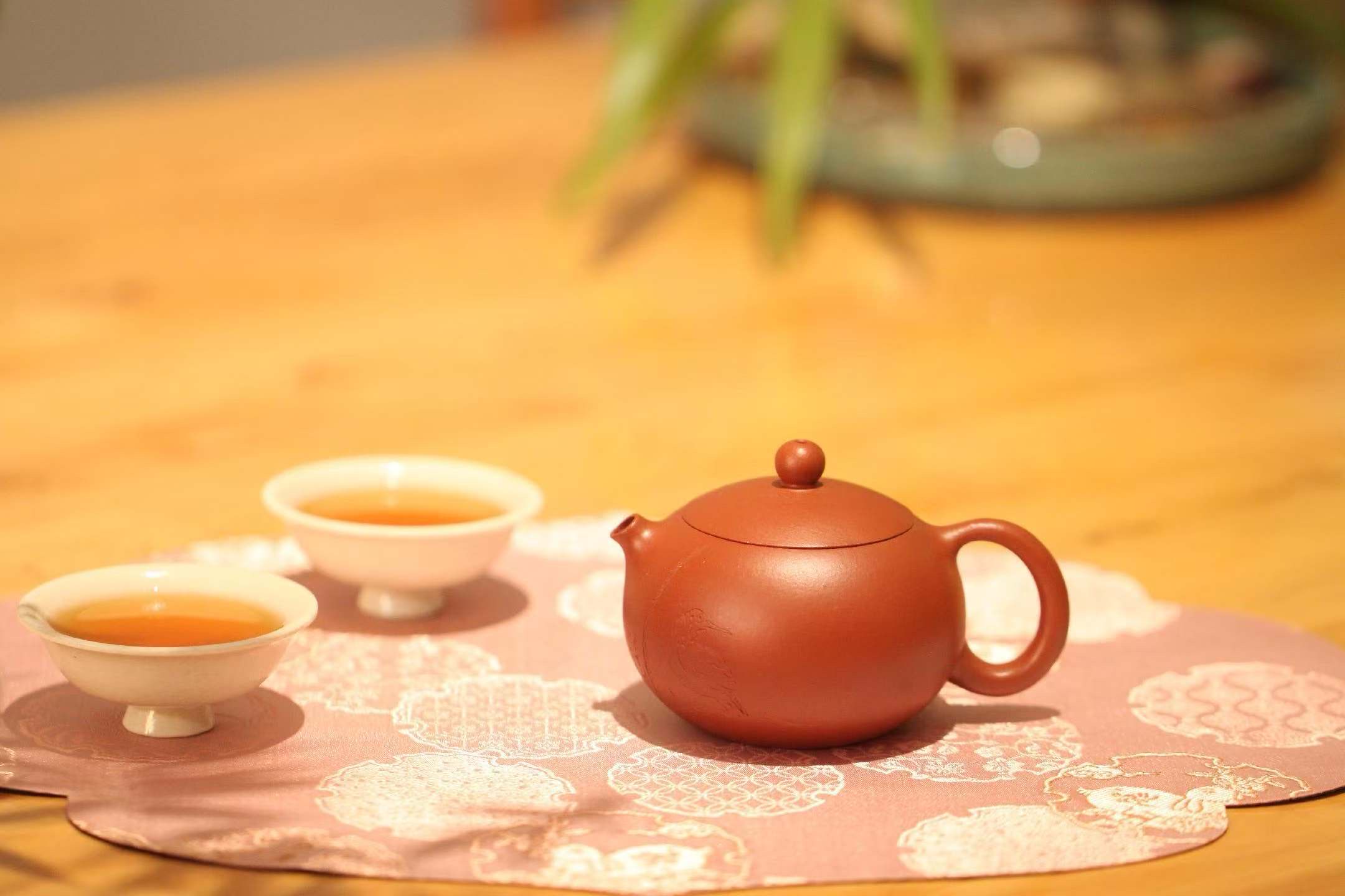 不同泥色裹着同款风骨,棕褐沉稳、红泥鲜活、青灰清雅,小壶承得下茶汤,也装得下日常里的慢时光。茶席一铺,花影轻摇,捧起的不只是壶,是把日子泡软的温柔。