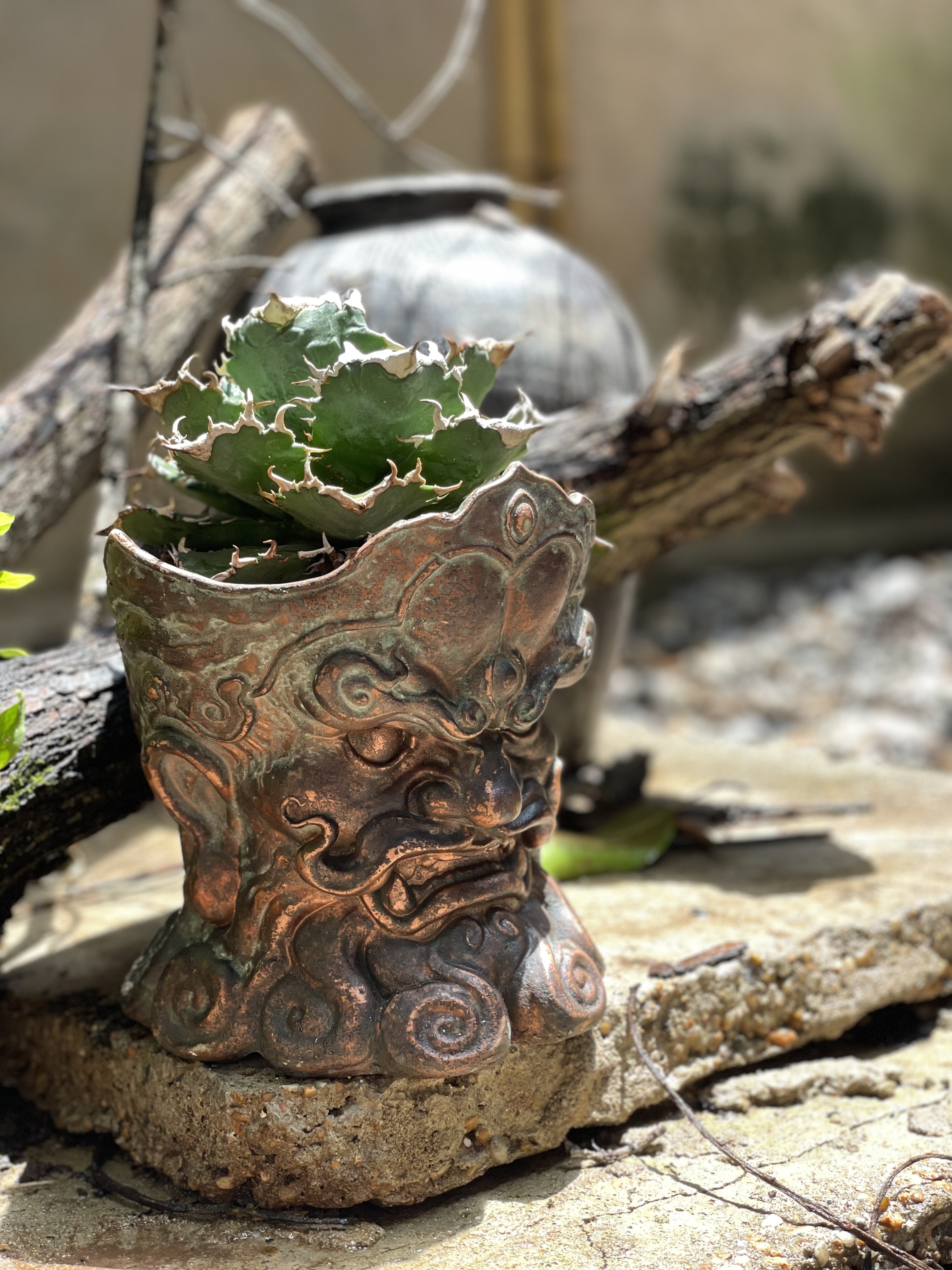 天王头上是绿绿的仁王冠吗?国风花盆够酷