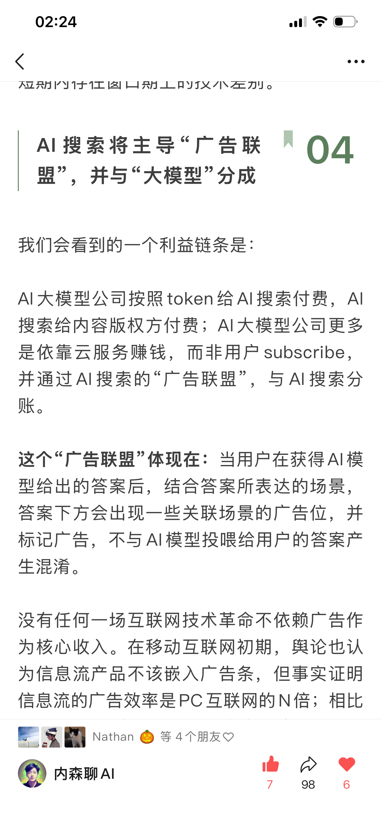 这就是我在去年7月的时候文章里预测的那样:AI终将对C端免费,未来收入大头不会是订阅费而是广告。