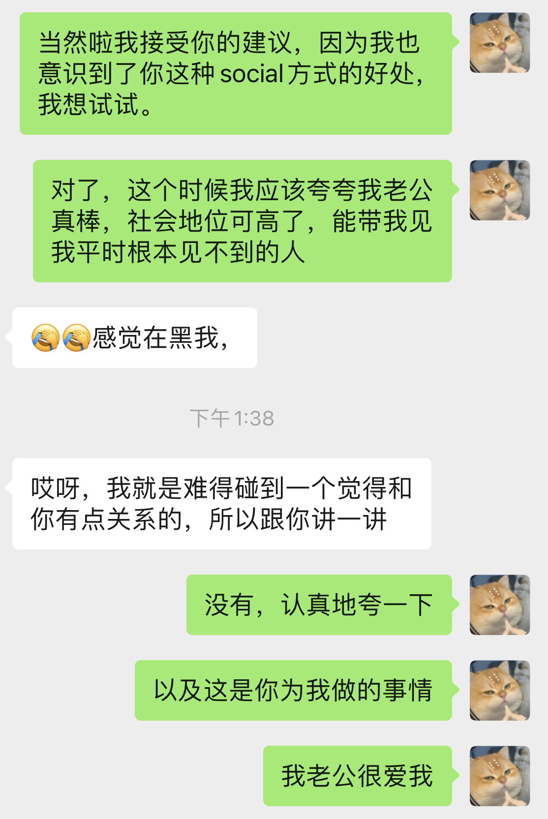于是我尝试别扭地夸了一下他。然后又补充了一句,你很爱我。