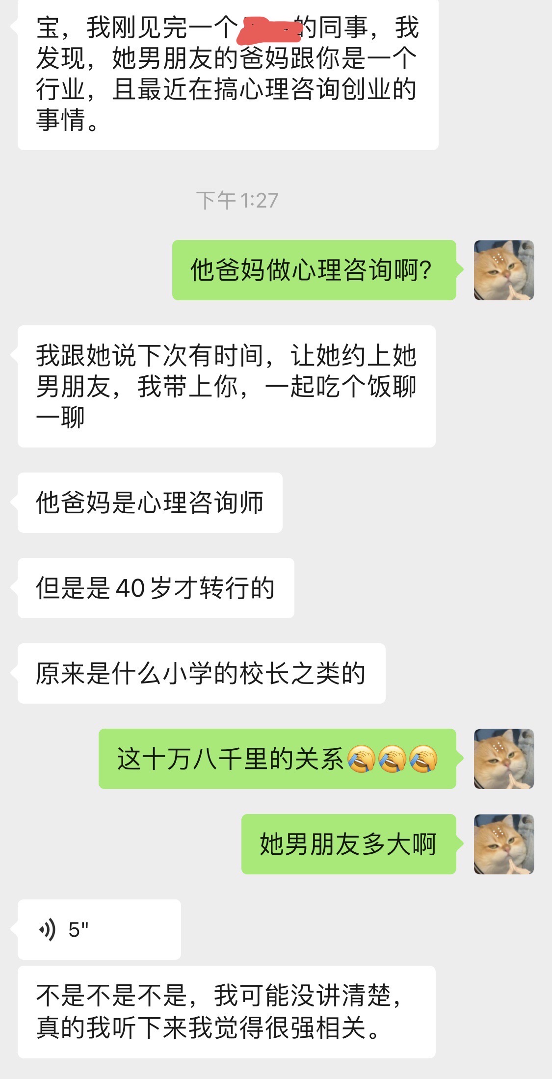 起因是今天老公兴致勃勃地告诉我,他朋友的男朋友的父母,也在心理咨询行业创业。下次要他朋友,约上自己的男朋友,带上我一起吃饭。