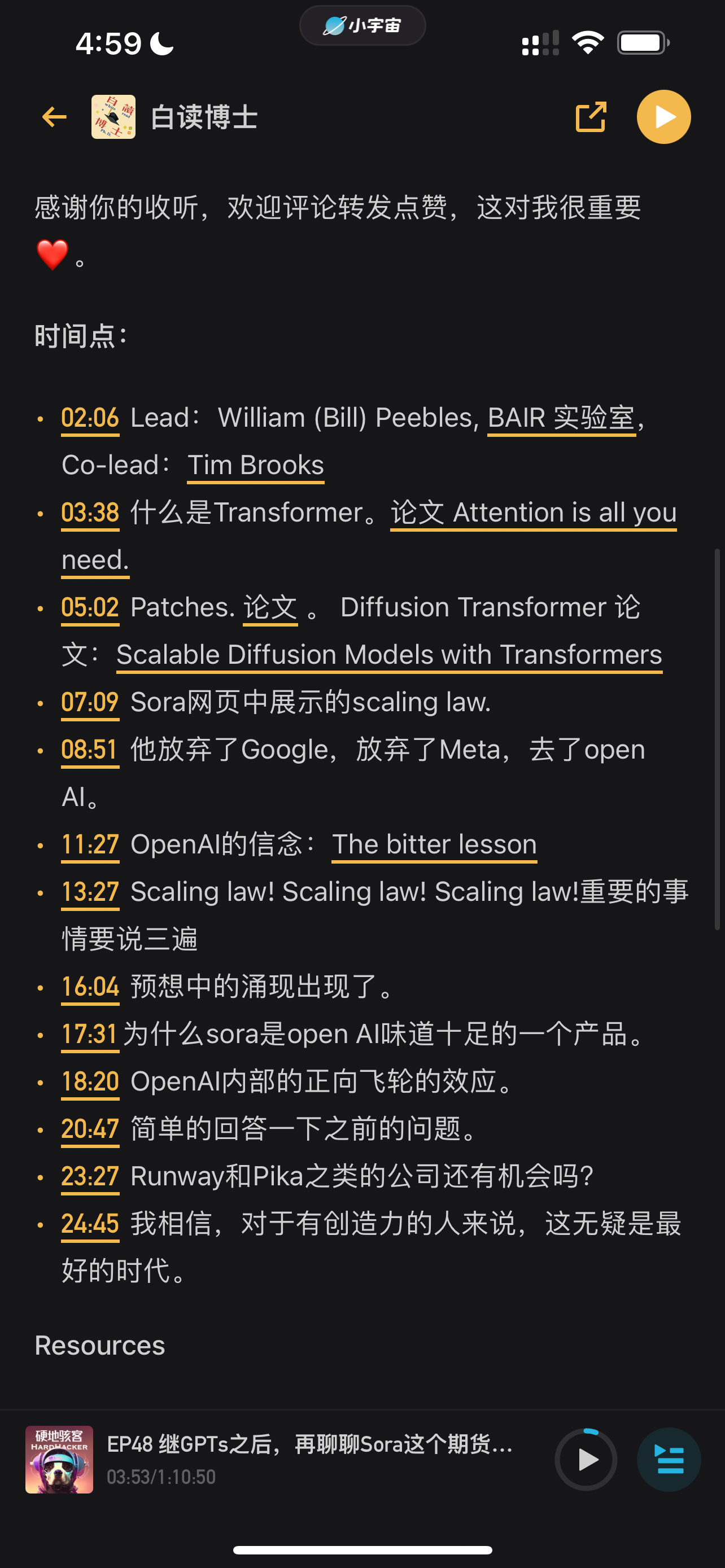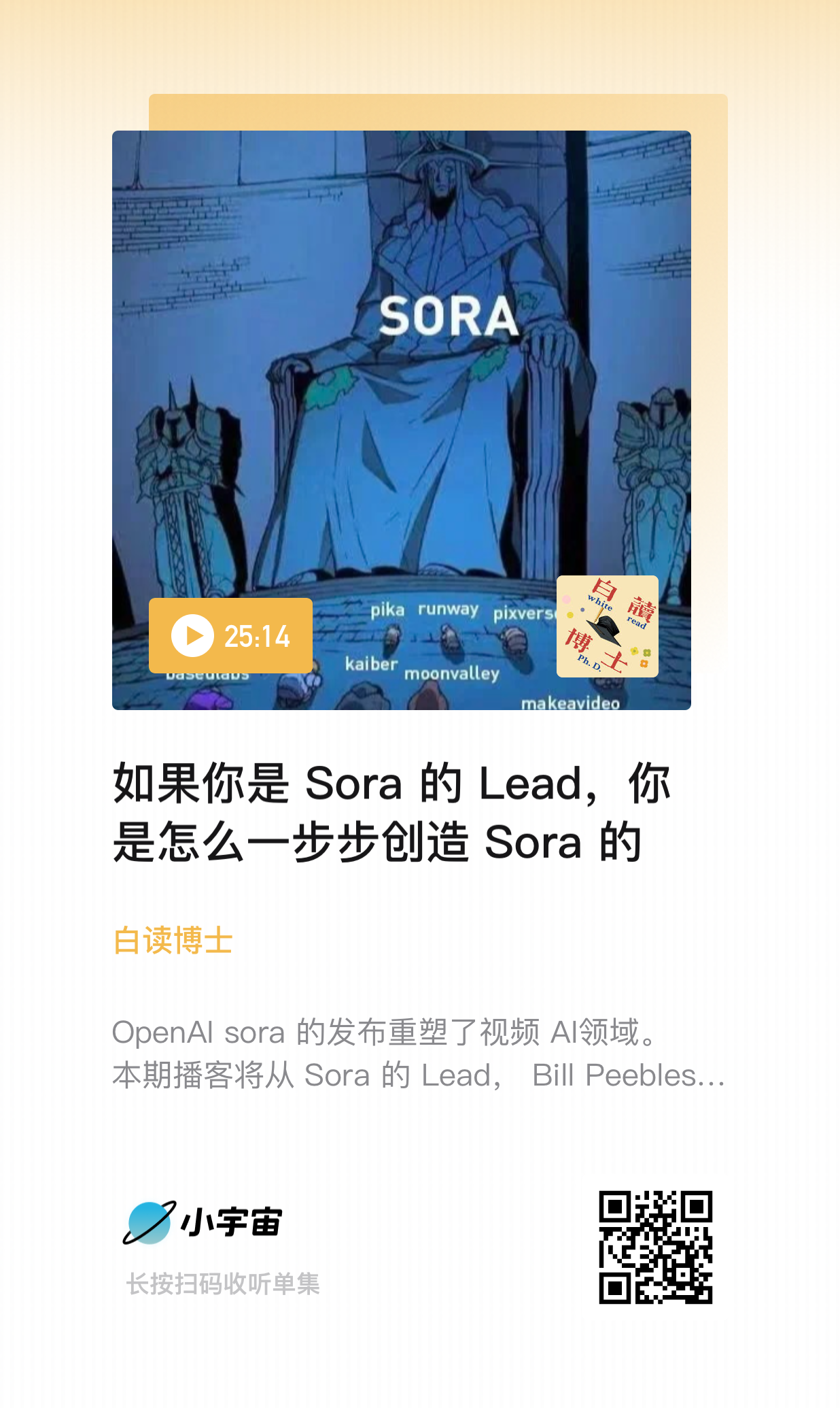 谢谢 Sora ,我的播客又有话题啦!这一期播客和之前讲 Sora 的文章都不一样,会从 Sora 的 Lead,Bill Peebles的视角出发,如何一步一步结合人才,技术,OpenAI 的信仰,向大家揭秘 Sora 是如何重塑视频 AI 领域的。听完本期,你自己一定有能力回答这几个问题: