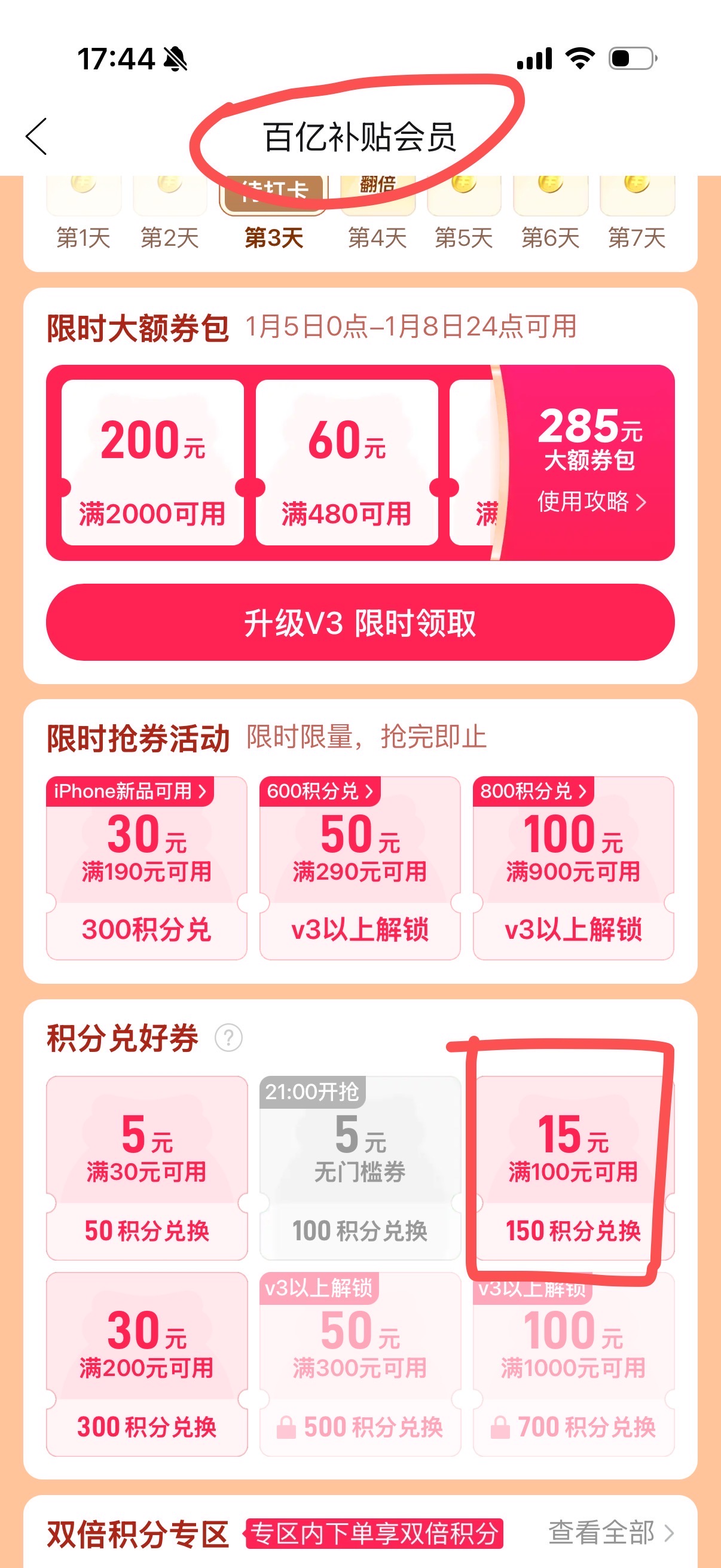 拼多多百亿会员还能领券再减15