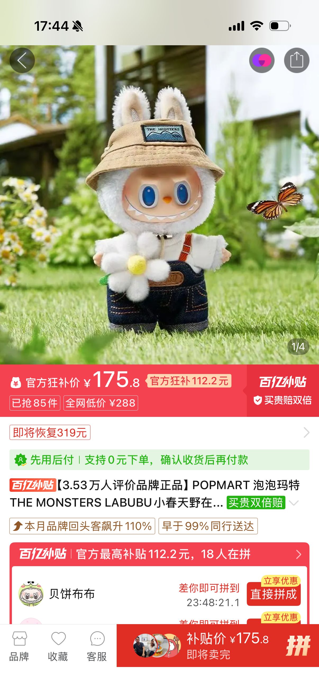 拉布布价格现在跌得惨不忍睹,比原价还低,也不用抢