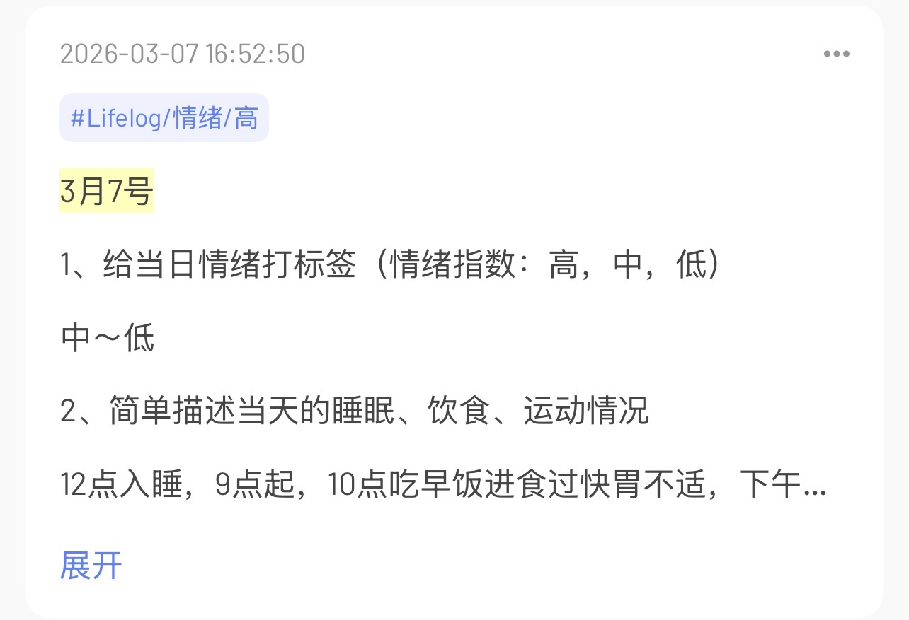 我现在每天拿起手机第一件事不是刷短视频了。而是翻看笔记、整理标签、查看生活日志!及时发现自己身上细小的问题并改正。