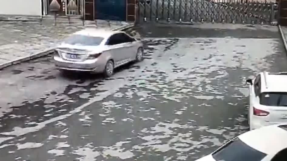 青铜本事王者的心!新手司机兴奋开车回母校 将油门当刹车撞烂校门