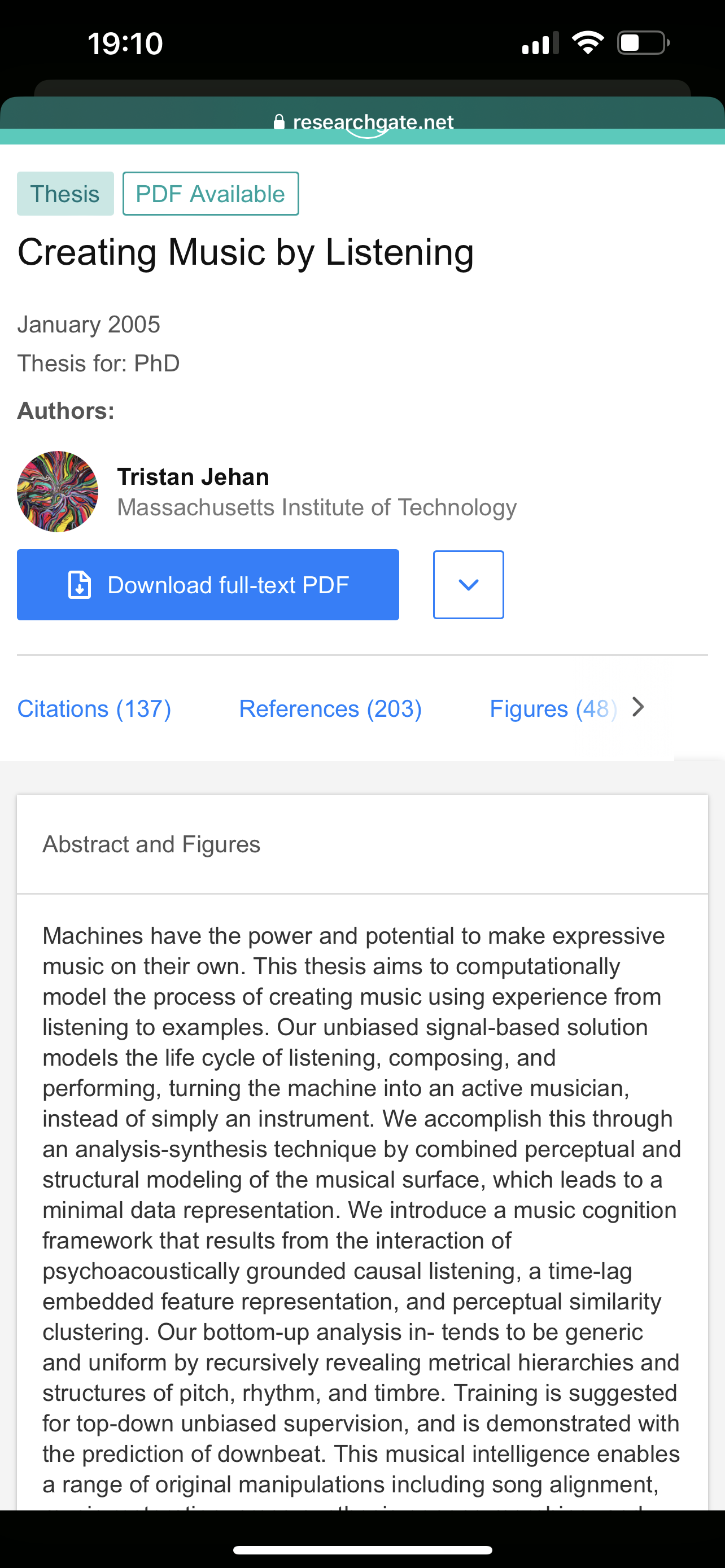 2005年,来自MIT 的Tristan发表了他的博士毕业论文《Creating music by listening》,并且基于这篇论文的一些技术实现,和他的同学Brian whitman创立了Echo Nest,并最终被Spotify收购,
