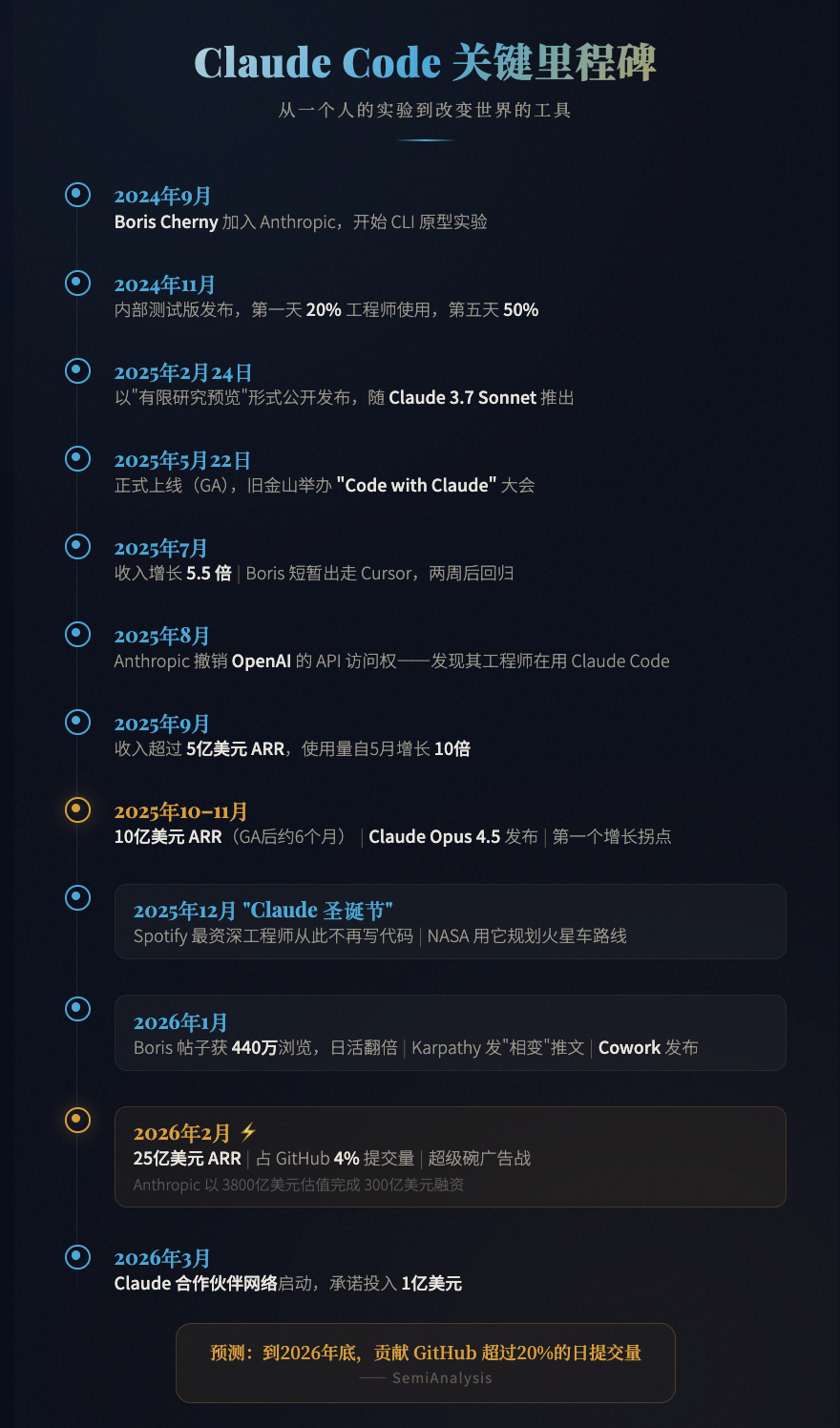 2026年2月,SemiAnalysis发布分析报告:Claude Code目前占GitHub公开提交量的4%。