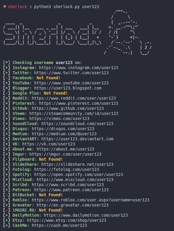 来自 Easy 的安利,sherlock 是一个输入一个名字后会全网帮你抓取信息的工具,很显而易见的使用场景,GitHub 地址:
