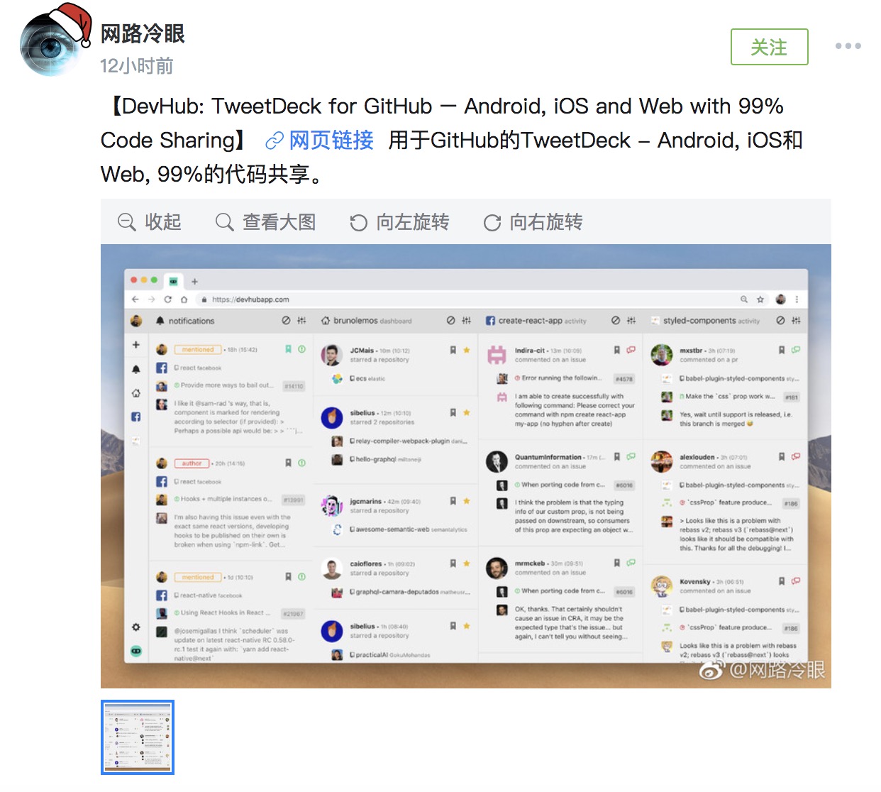 DevHub: 用于 GitHub 的 TweetDeck - Android, iOS和Web, 99%的代码共享。GitHub 地址: