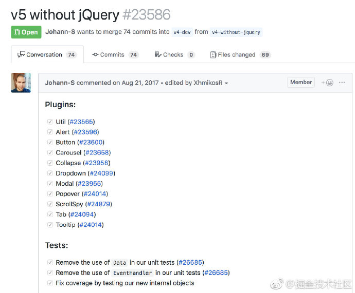 Bootstrap 5 将删除对于 jQuery 的依赖,对应 GitHub 地址:
