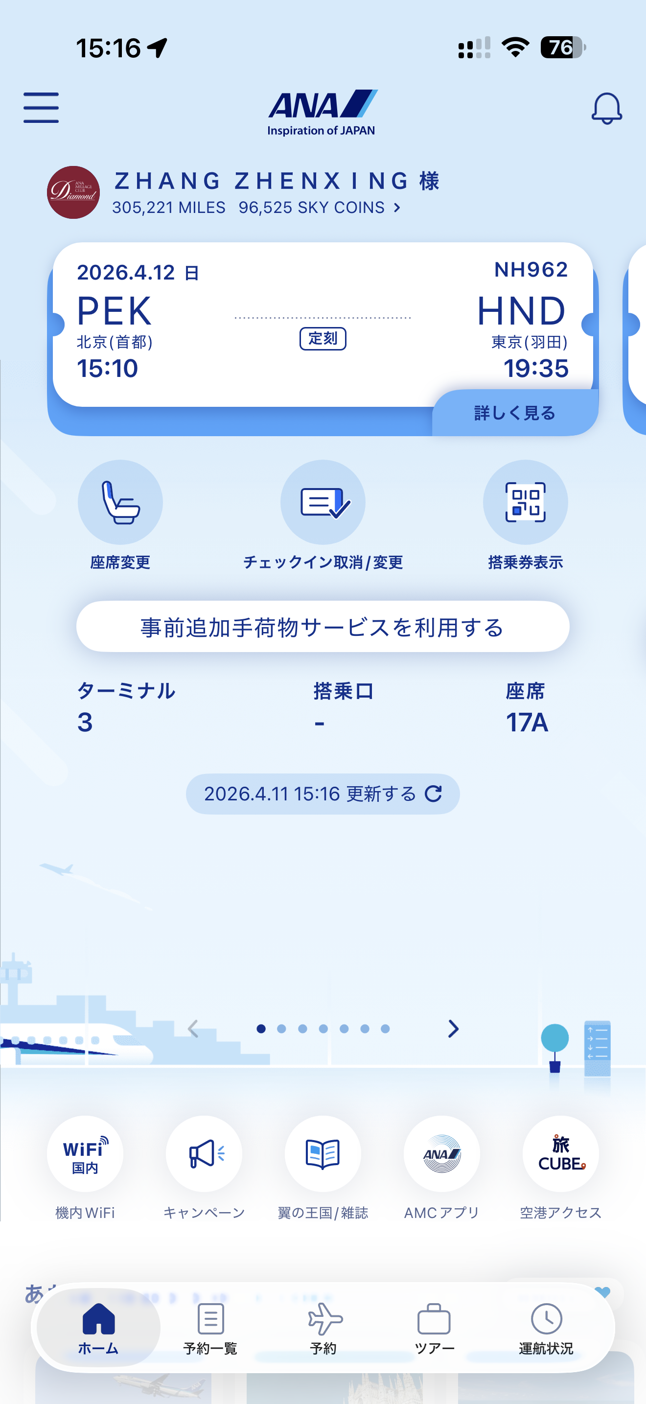 上周日从北京回东京的NH962,常规都是77w执飞,提前一天online check发现被升到商务舱了,开心地想着柜台相谈能不能给77w前排的头等座位,毕竟今年ana钻石卡了。然而周日早上睡醒再刷新,发现换了789就被降回超经了...估计是经济舱超售太多,ana不想付出太多免费升舱成本吧...这种让人失望的事情偶尔也会有的