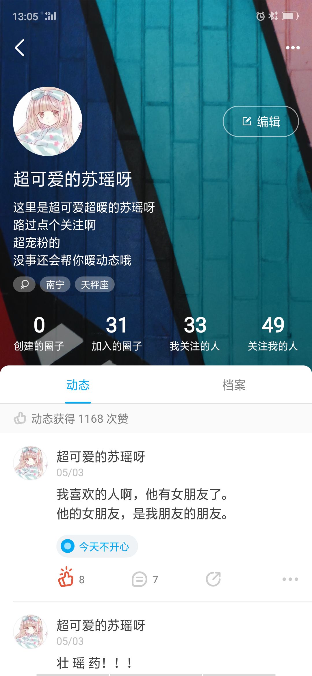 昨天的苏瑶丧丧的,今天希望能有个好心情