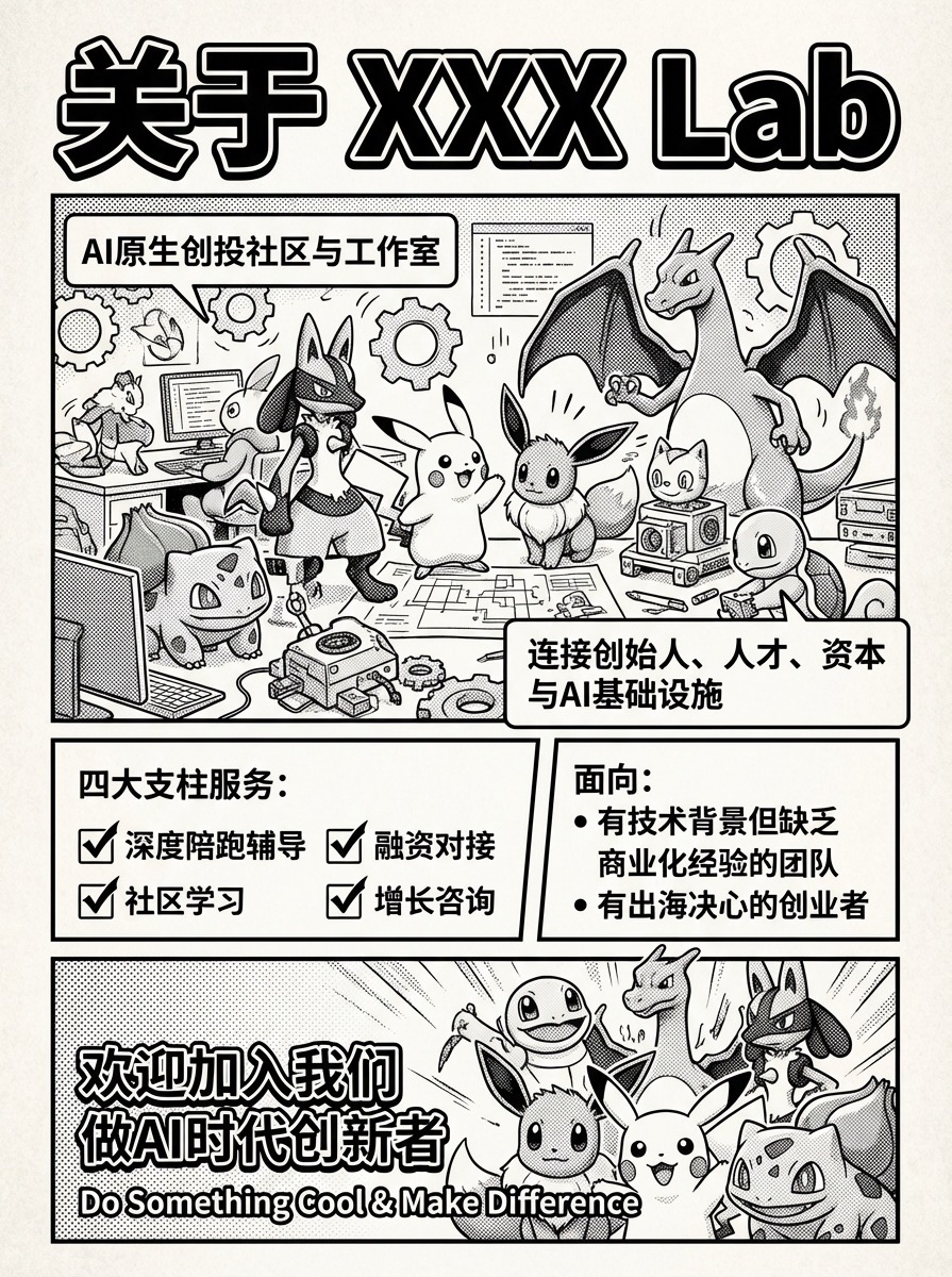 XXXLab是一个AI原生创投社区与工作室,致力于连接创始人、优秀人才、资本与AI基础设施。我们不是传统孵化器,而是在构建一个真实的AI时代组织形式实验。