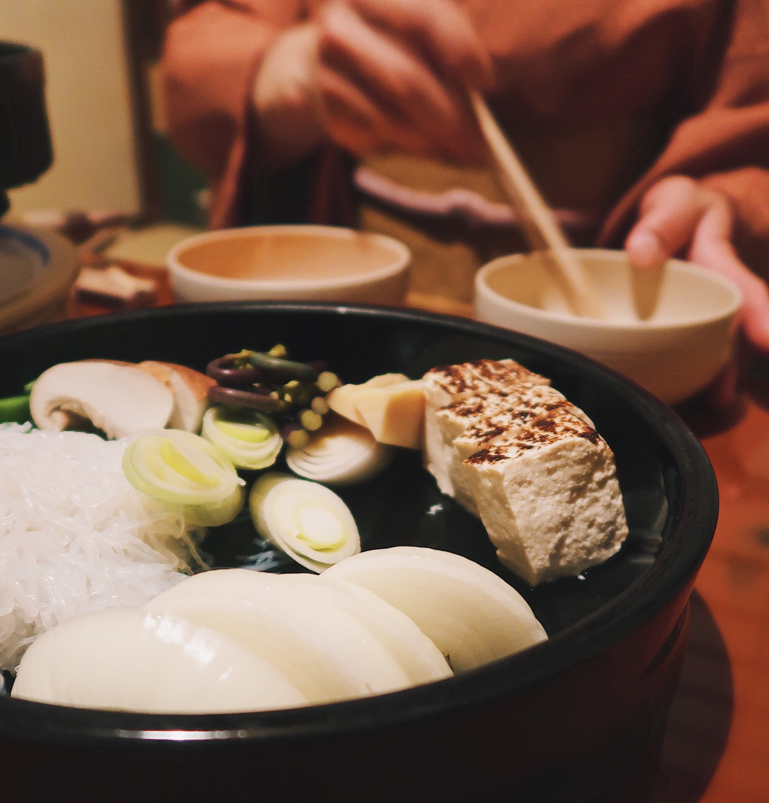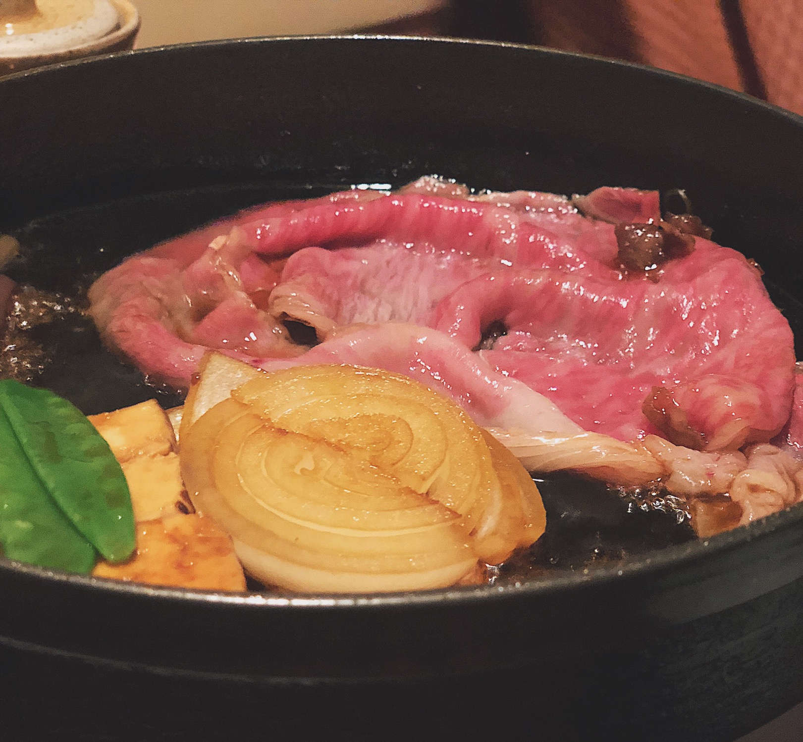 粽子选了套餐松,牛肉品质果然出众,肥瘦匀称的霜降雪花让人食欲大增。关东派寿喜烧,不像关西派那么甜口,事先倒入调和好的酱汁,放入少许蔬菜后加入牛肉炖煮