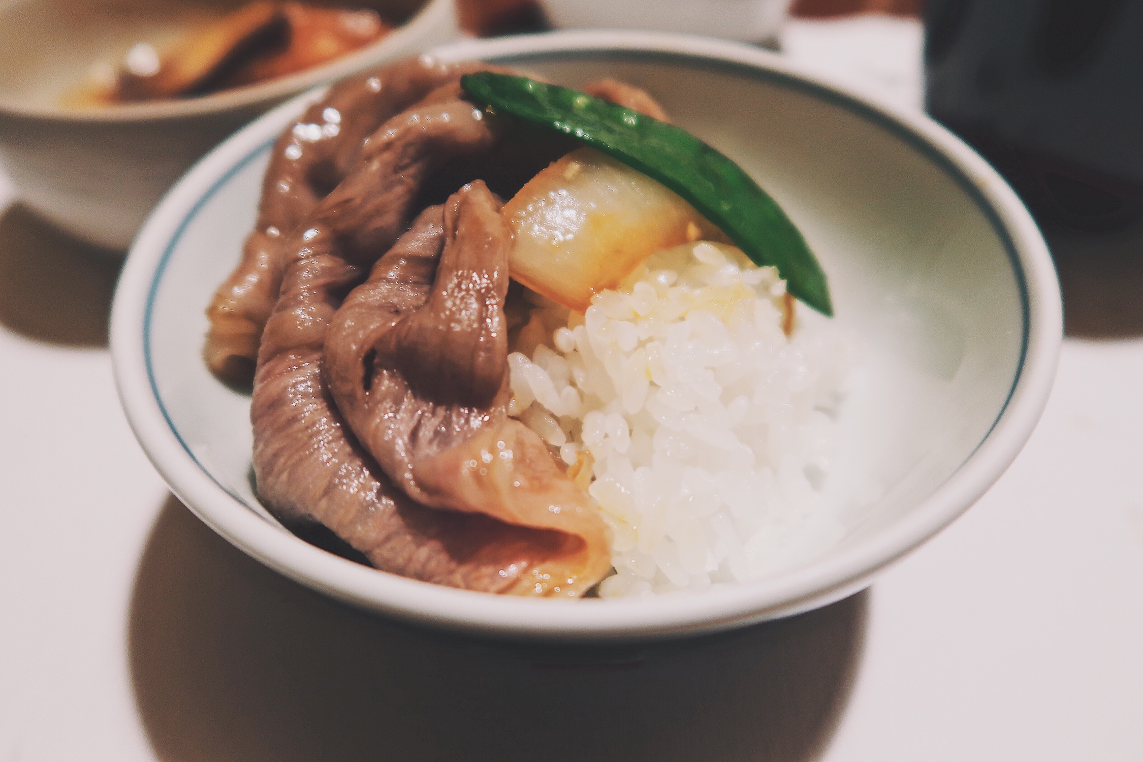 最后放入寿喜烧的灵魂伴侣——生拌鸡蛋(馋)让肉质更加嫩滑的同时帮助肉片降温,略微过甜过咸的调味在蛋液的中和下达到完美的平衡,入口即化的牛肉,因为切成薄片的缘故,不会感觉过于油腻