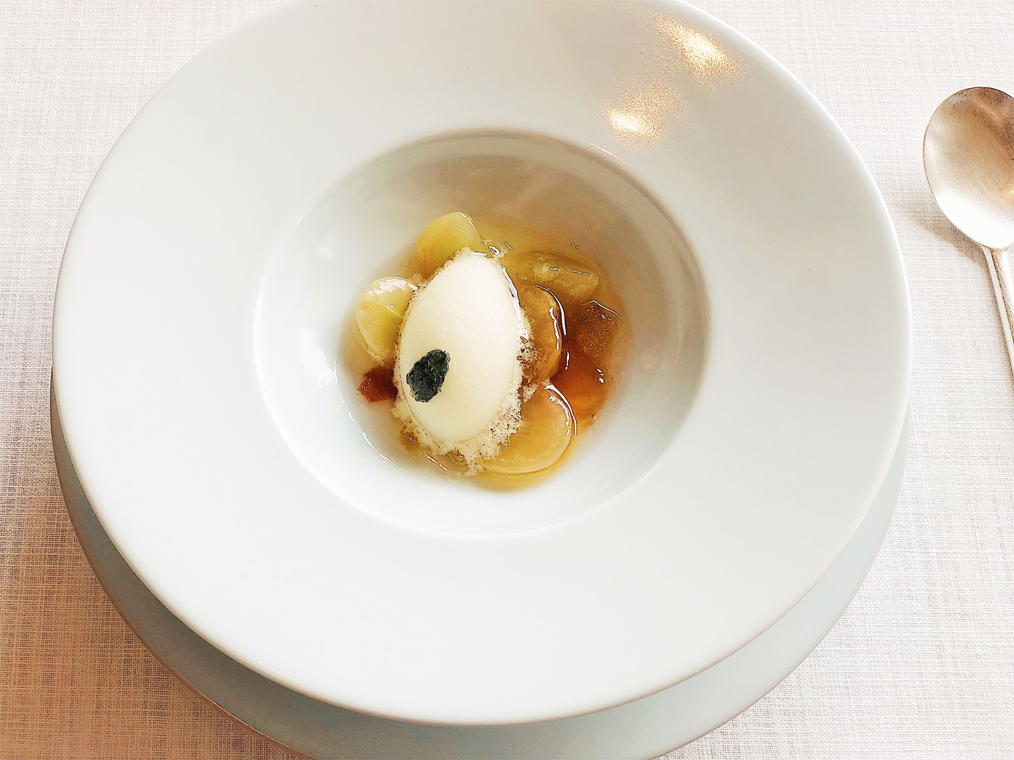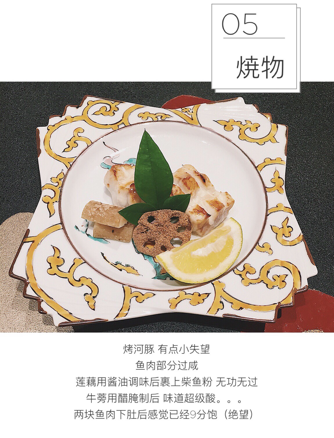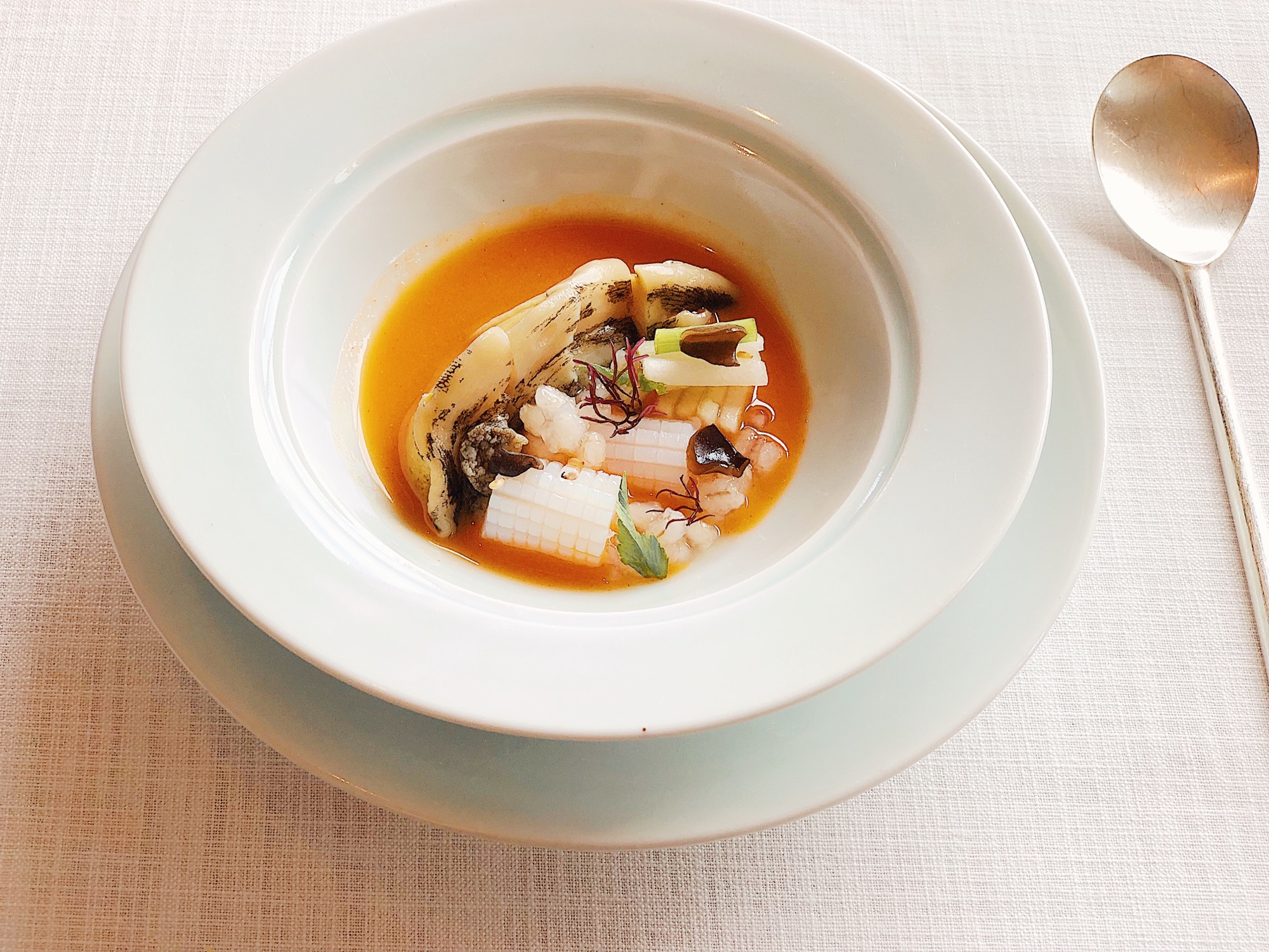 开胃菜和前菜都以蔬菜呈现,纯粹自然的甜味搭配些味赠提升咸鲜口感,味赠以比较少见的赤味赠调和白味赠,相当好吃