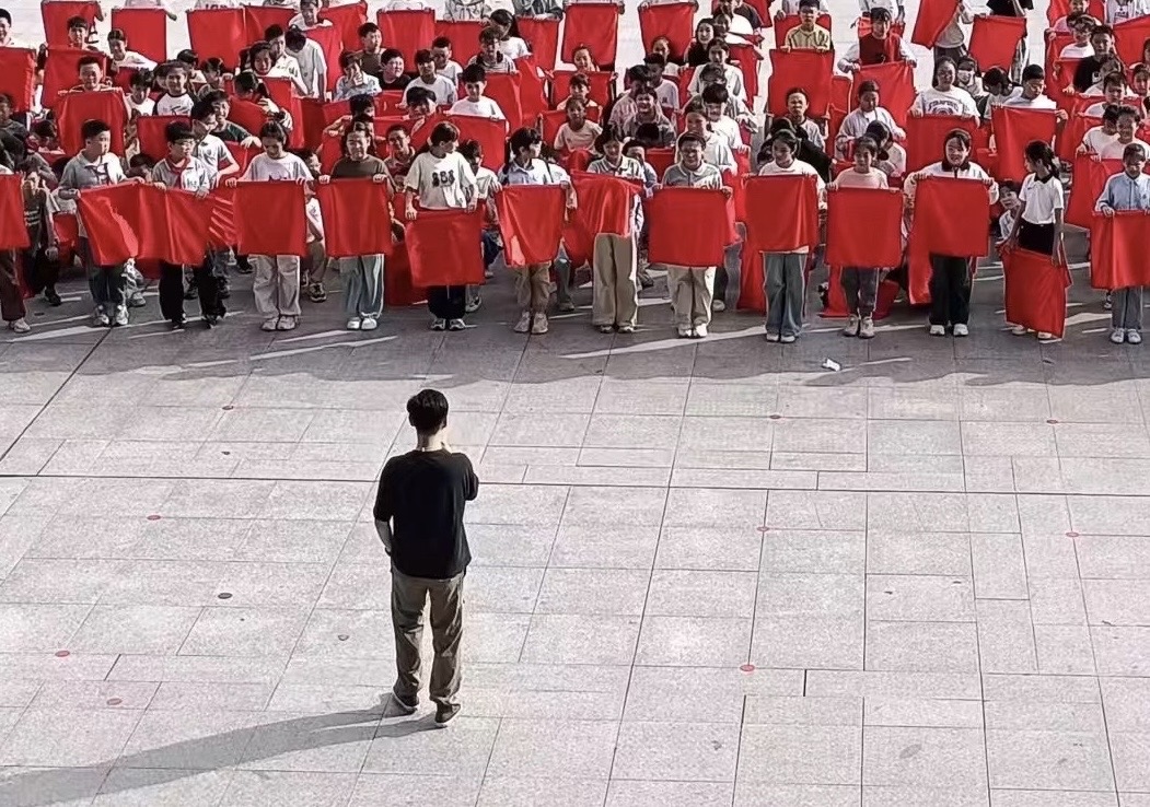 上周排练团体操时还穿着短袖😂