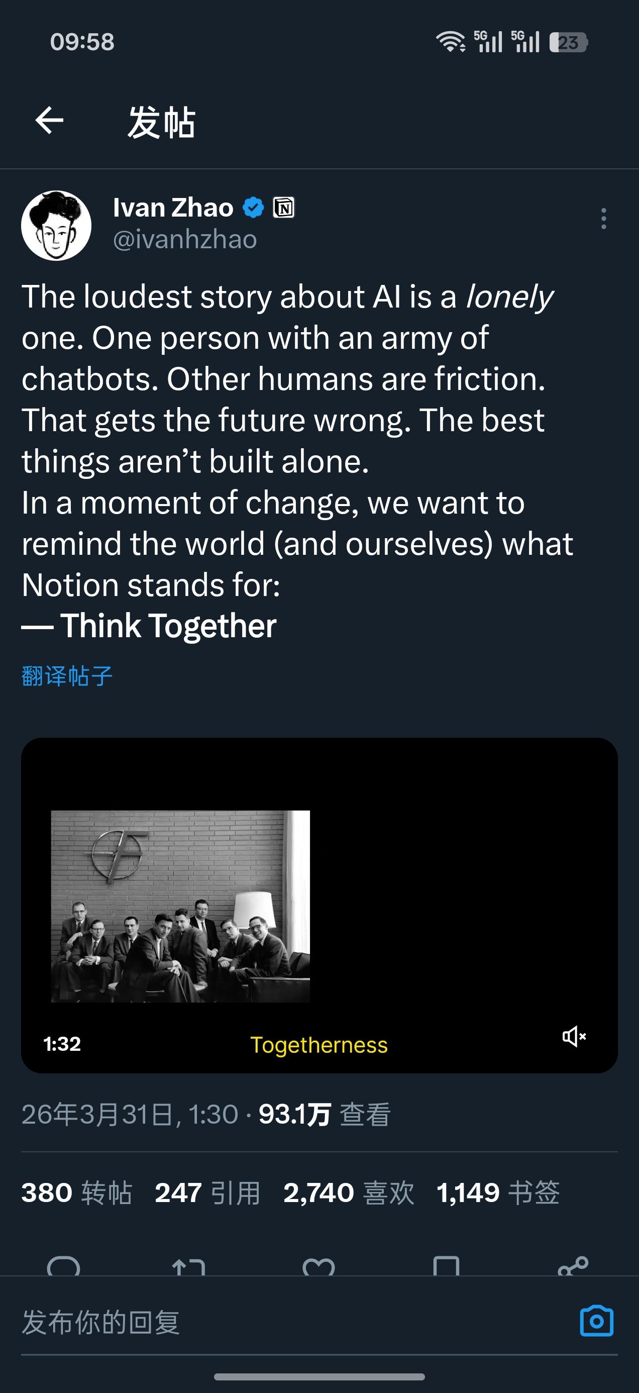 我把我们社区围绕《全球概览》解构、重读的艺术书递给了他。Quintein 是个资深的创业者,上一家公司以 3 亿美元的价格退出。你看 Tolan 现在的产品、技术和营销,一切都做得极其顺滑。有时候,你会期待这些深受反主流文化影响的人能把离经叛道写在脸上,但他没有。他把那些狂野的创想,极度克制地藏在了丝滑的产品体验里。