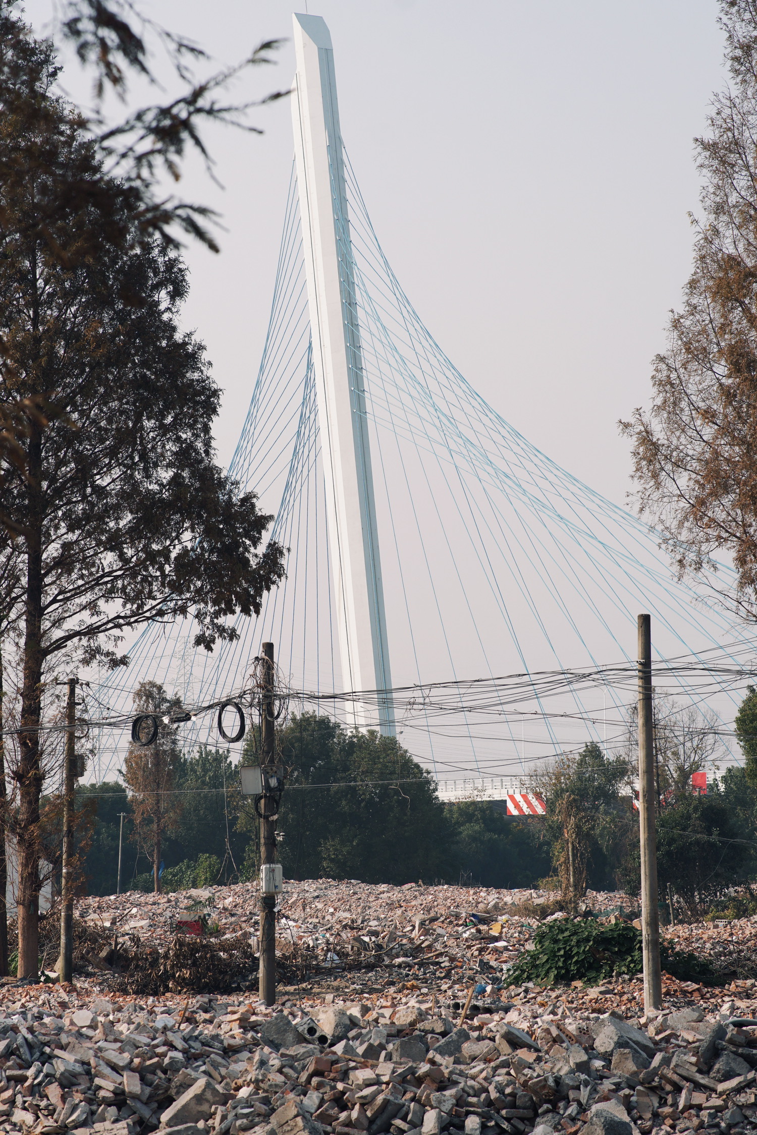 路过虹梅南路与东川路、紫凤路当中一座桥,回头瞥见桥下一片红杉秘境,在日落的照映下显得那么的好看。