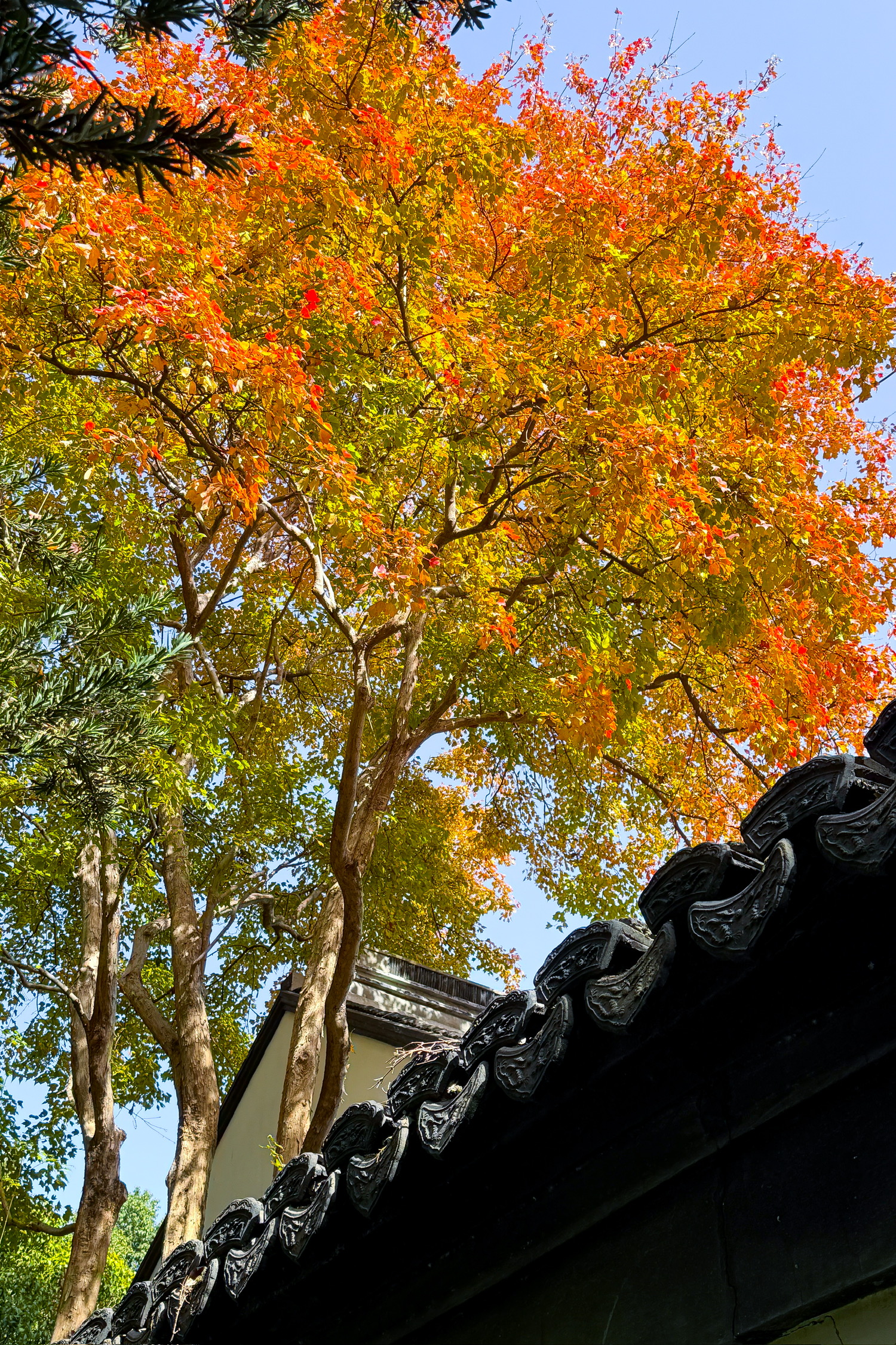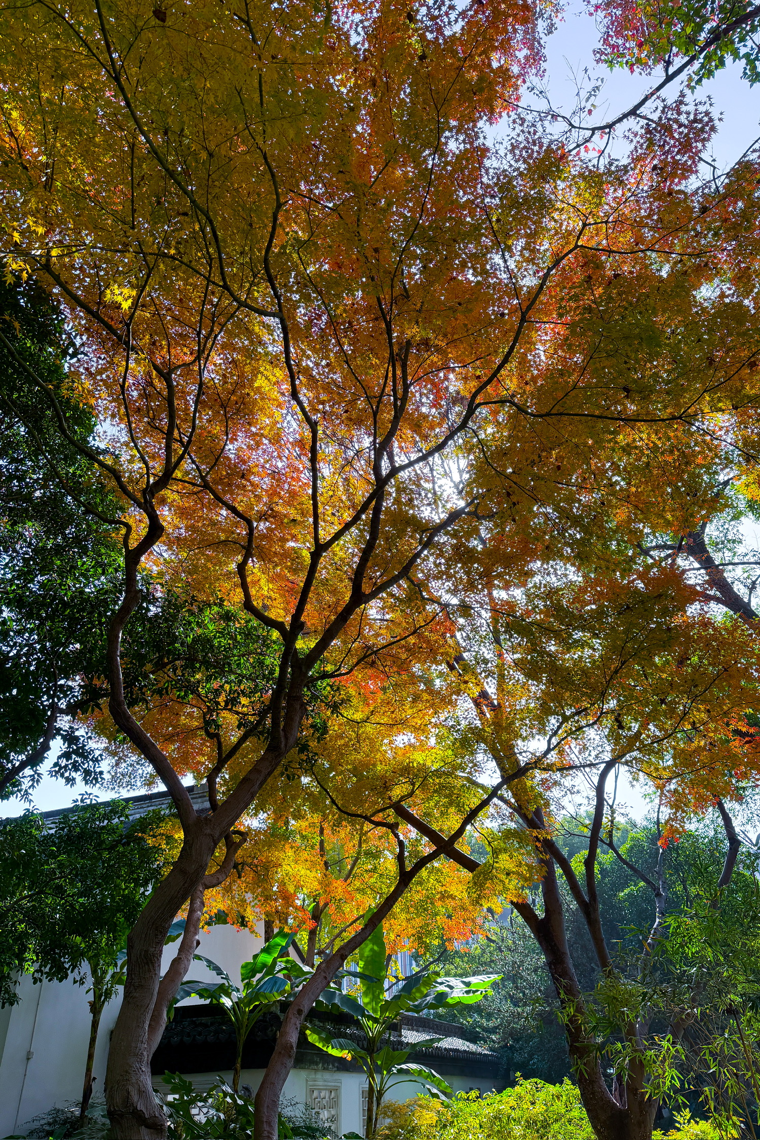衬着未谢的绿意,整座园子的秋便有了层次:深的、浅的、暖的、柔的,裹着晴日的温煦,把“深秋”写成了一帧鲜活的画。