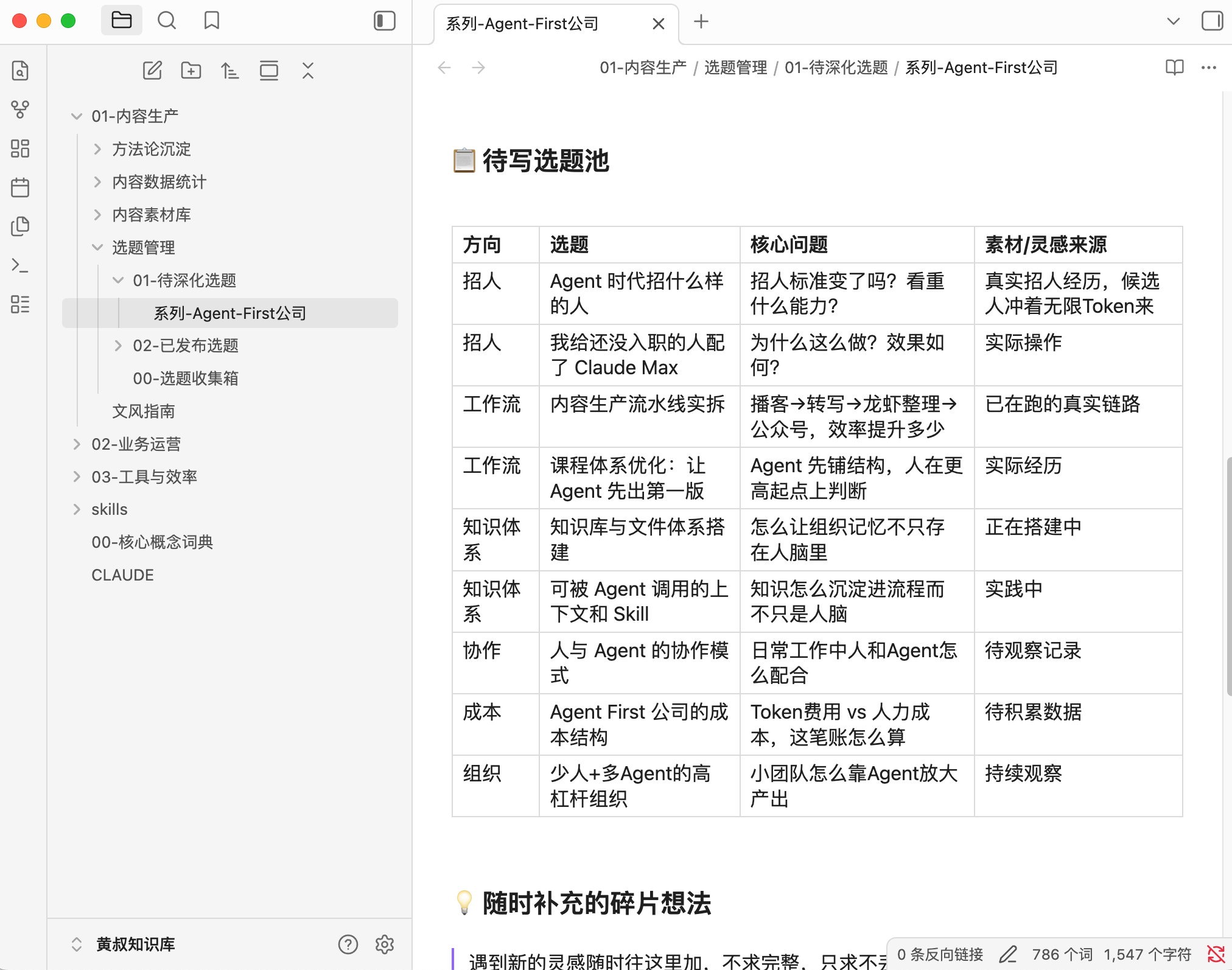 接着,我想随时都可以和AI讨论,把选题和思考记录下来