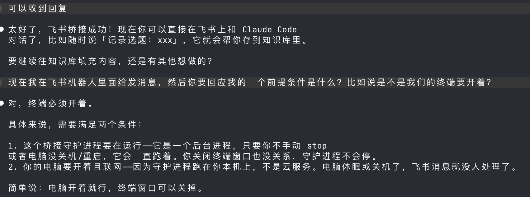 先用歸藏的Claude-to-IM-skill构建了飞书和CC的打通