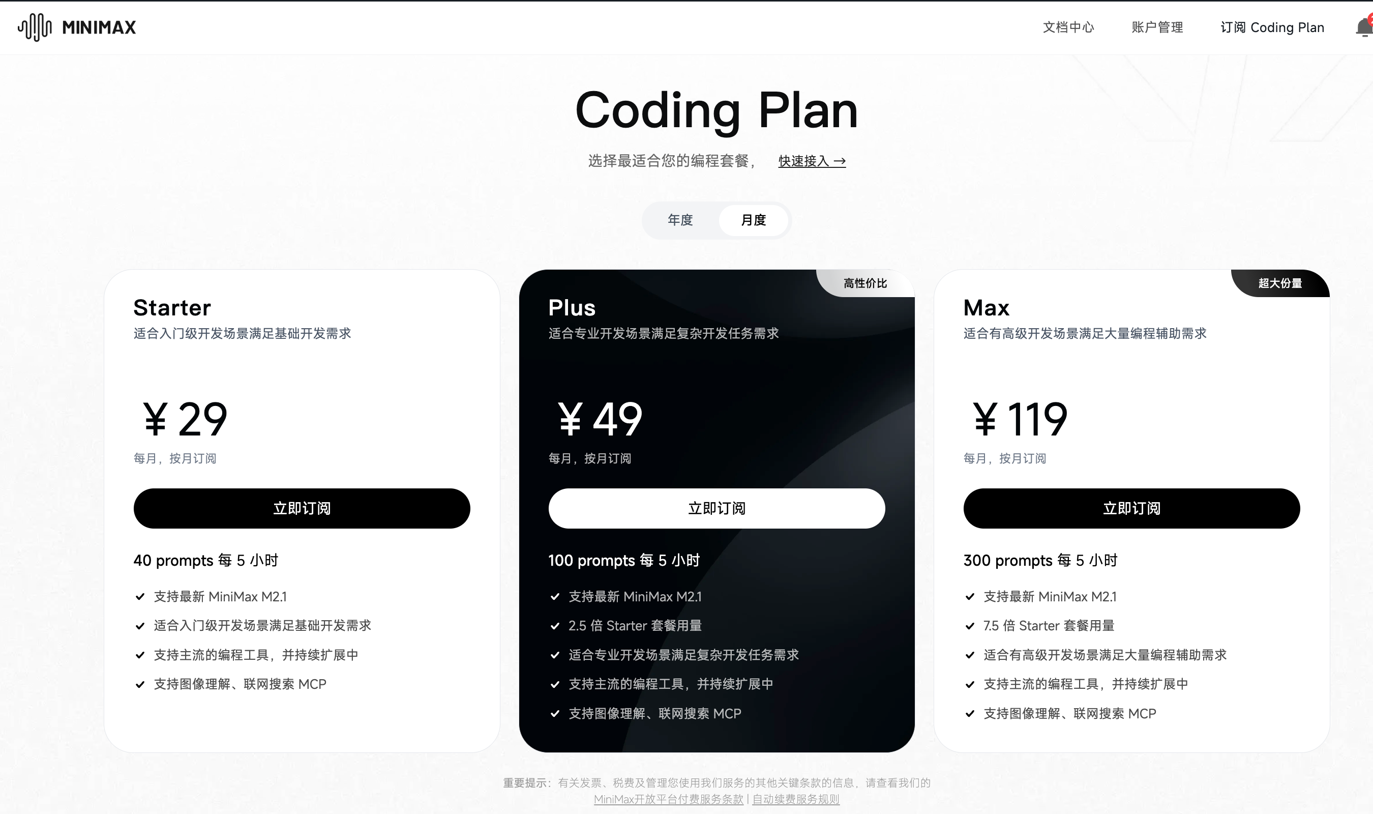 MiniMax Coding Plan 3个月Plus会员(1折)