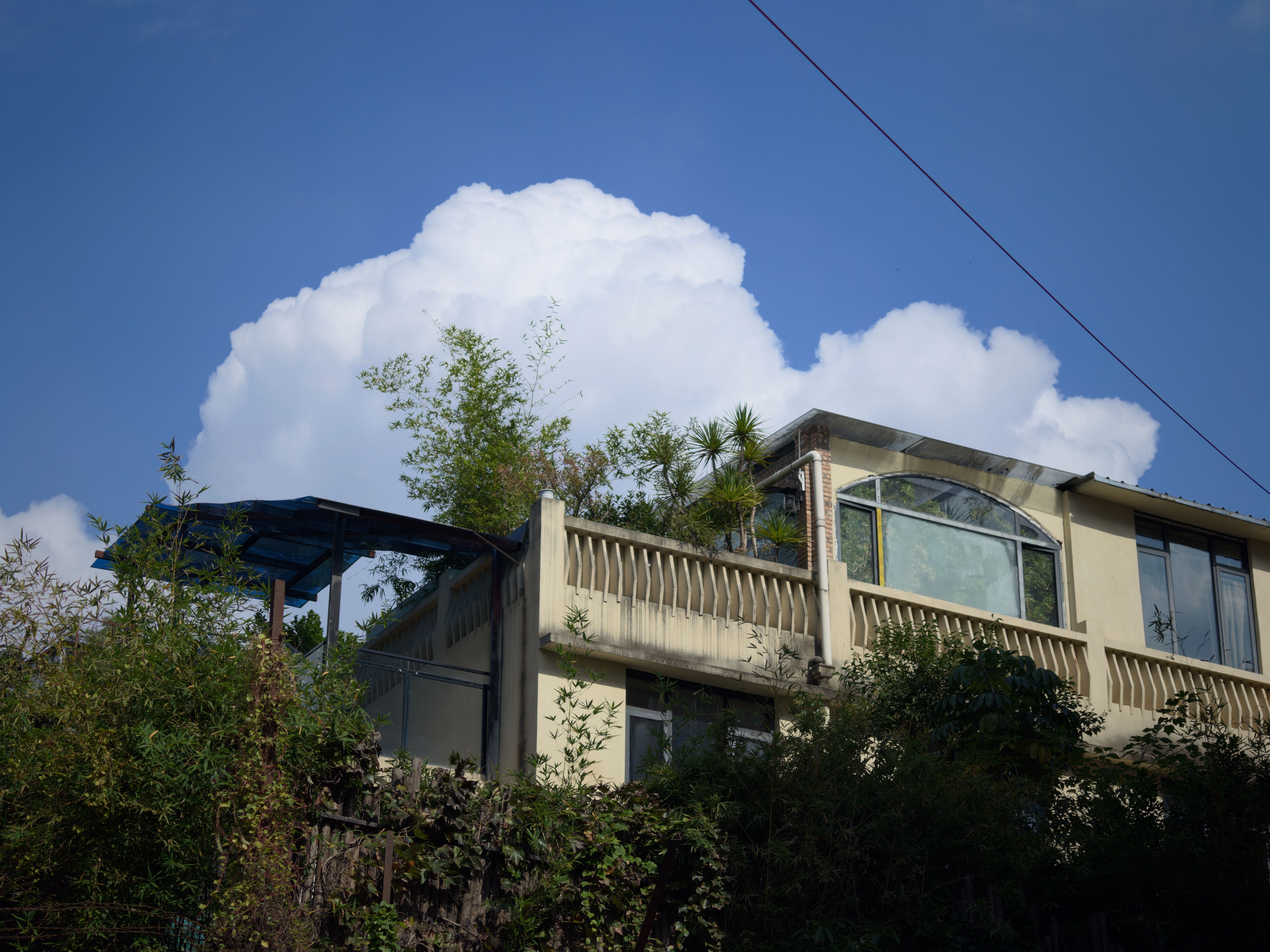 最近成都总是阴雨天,上周一成都突然出了太阳,在小区楼下闲逛的时候,抬头看见一片云朵,配合着楼顶的小阳台,感觉好治愈~