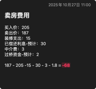周日最后 187w 卖了,基本上就是 1 周降 2 万的节奏。不过这个价格也符合我的预期,已经比小区同户型多卖 9 万了,很知足了。