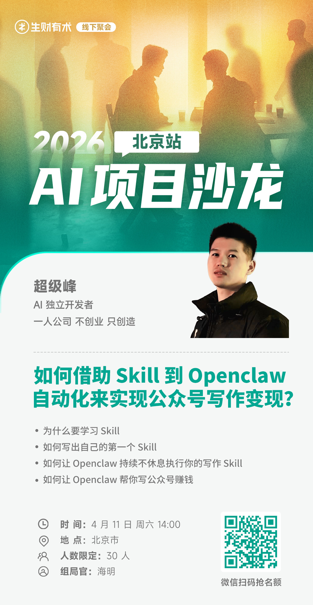 1、公开免费的 AI 编程教学线上分享会(50人):