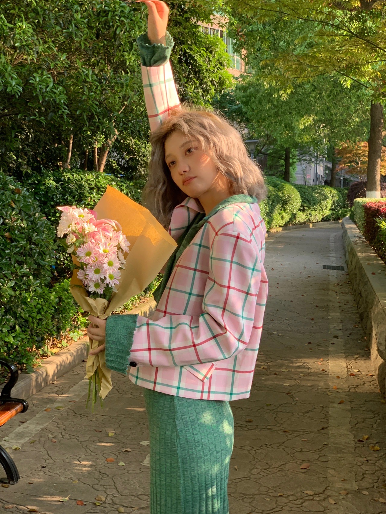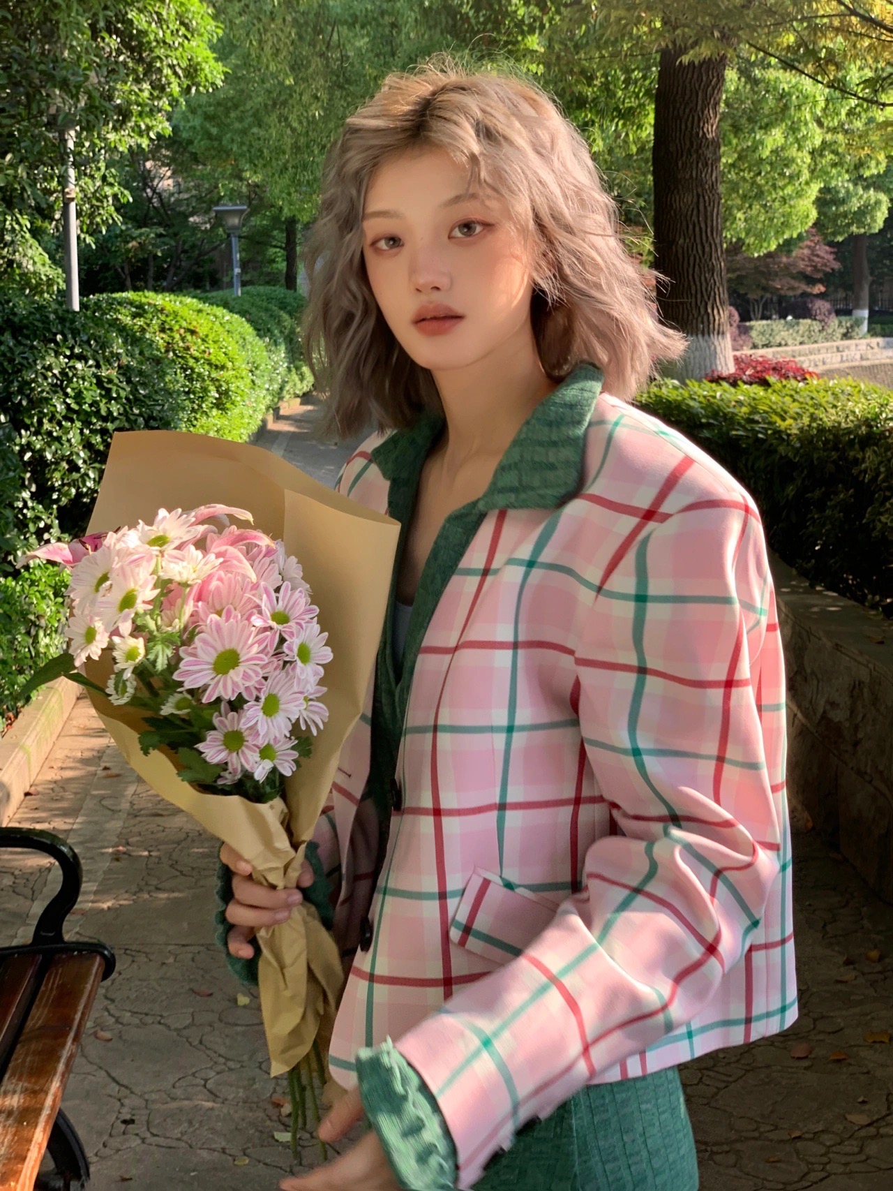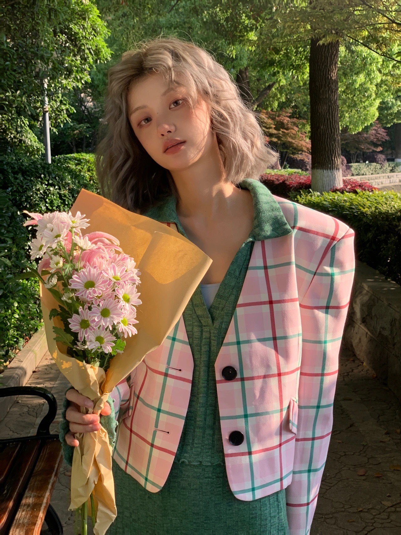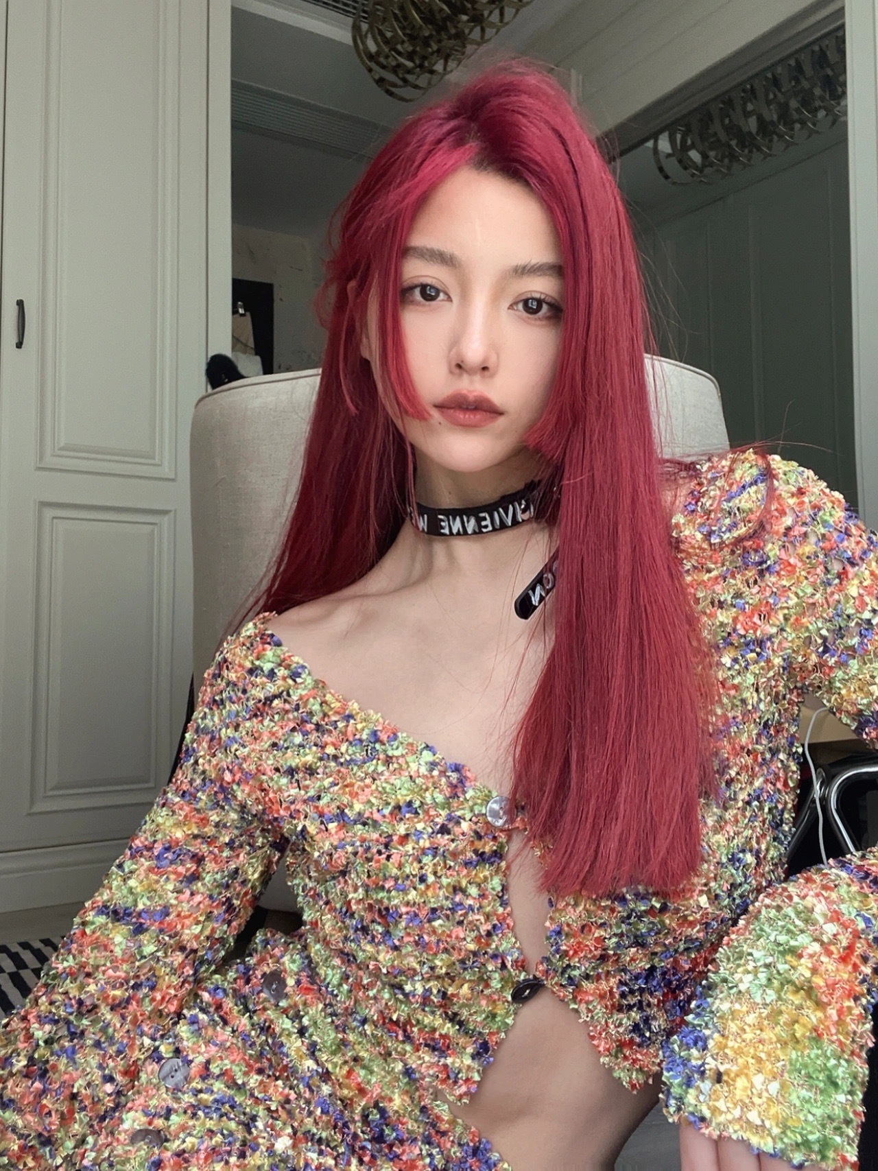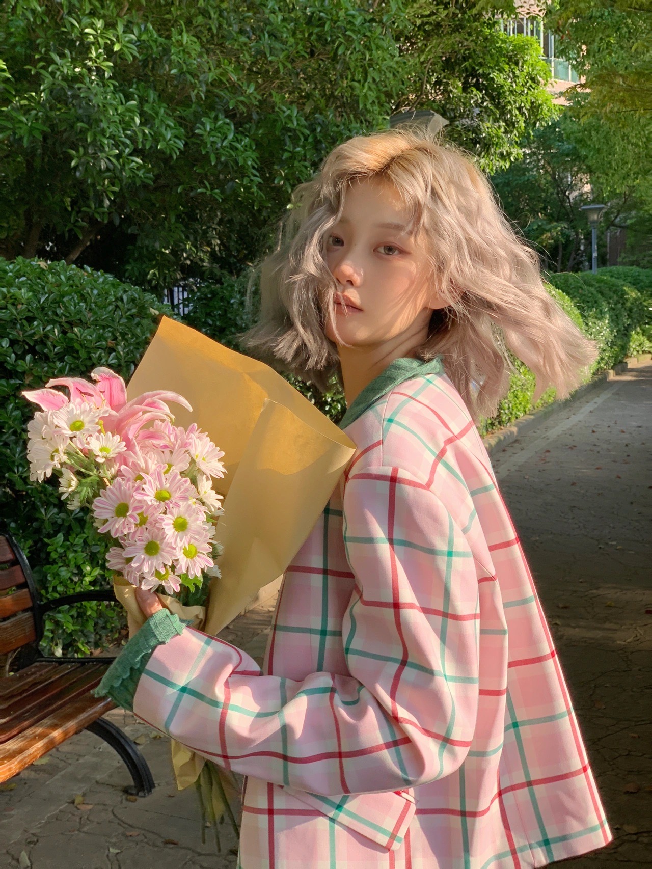搭配粉色头发太好看了,少女心爆棚,仙气十足超可爱。粉色中带一点金色提气色超显白。染完了之后就是行走的花朵🌼越洗越好看,在阳光下会偏粉色,在灯光下是玫瑰金的感觉。简直太绝,不会过于夸张但又很可爱