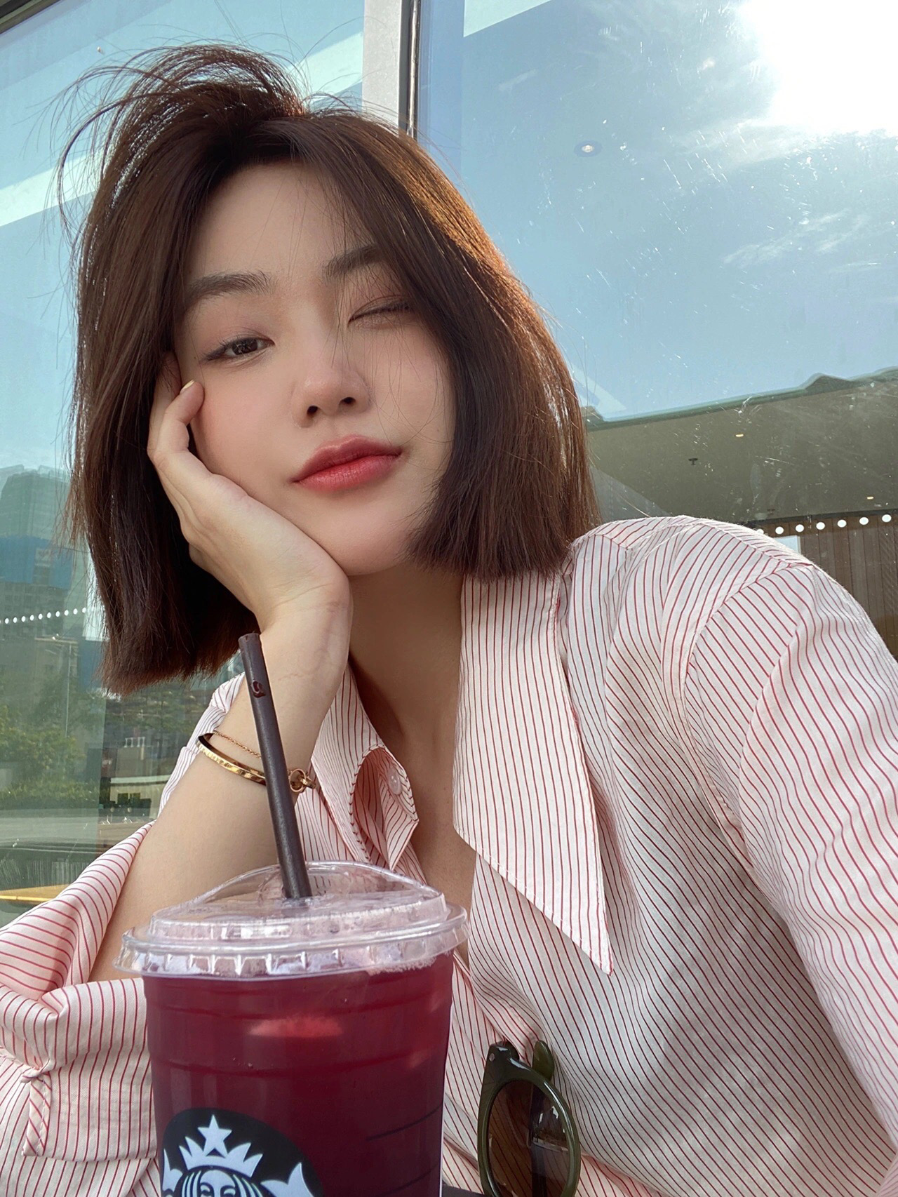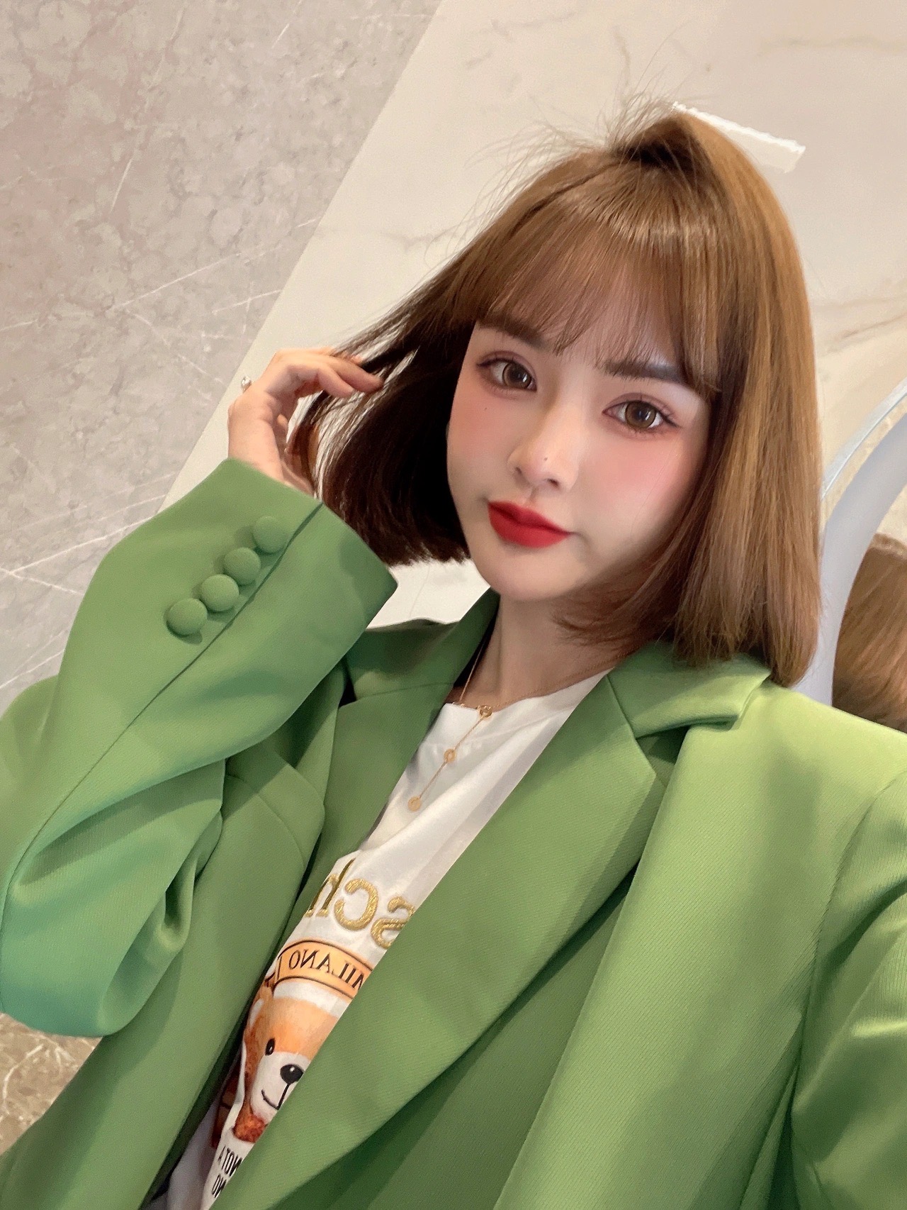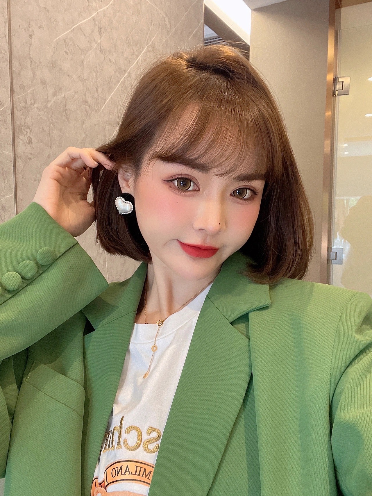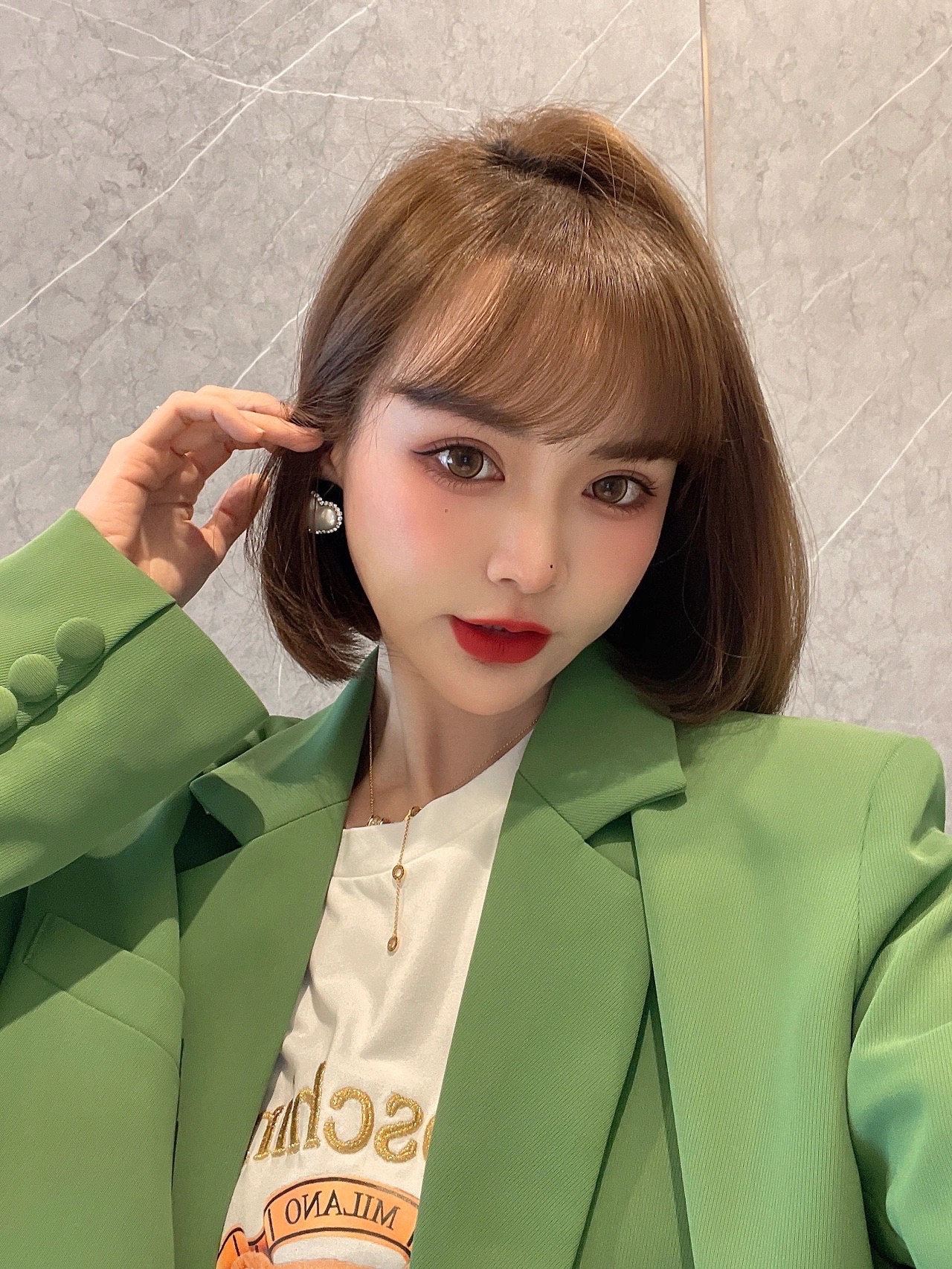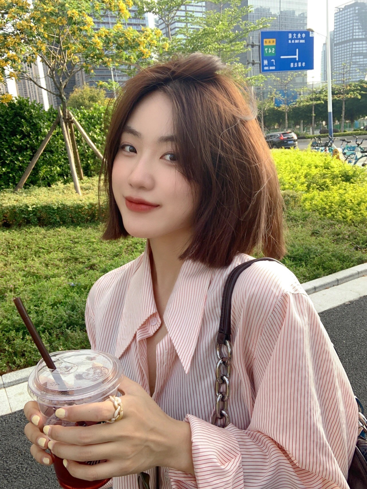 ✅这款发型长度在下巴位置,偏可爱甜美的风格,这个长度可以很好的调整身高比例
