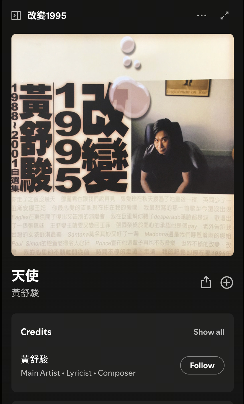 黄舒骏有写一首歌叫天使,后来发现王菲后来也拿来唱过,然后对比听了一下,果然是王菲啊...
